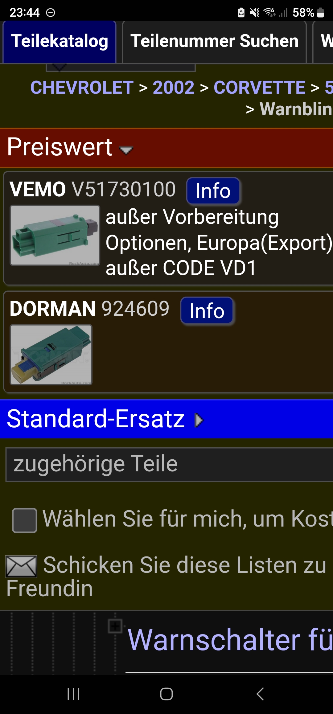 Bei Rockauto wird von Vemo der Schalter für EU Modelle angeboten.