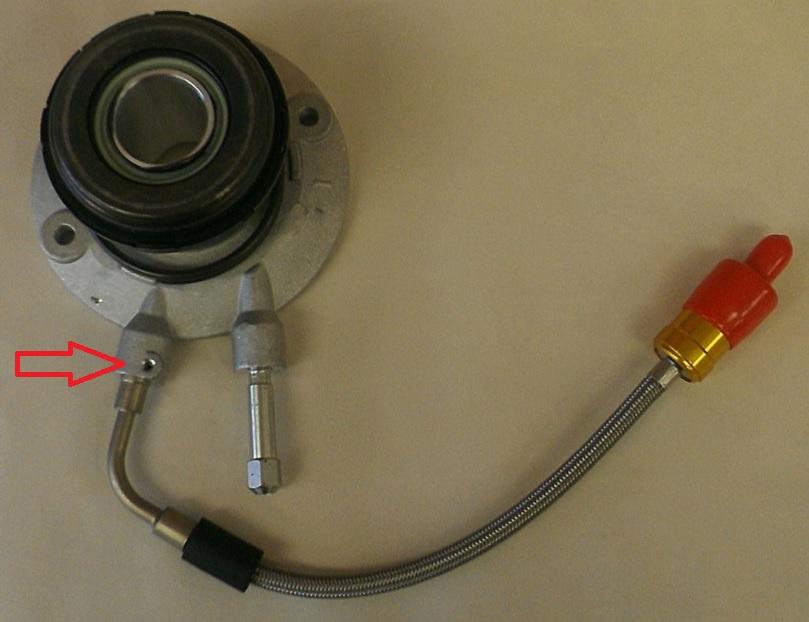Die direkt am Nehmerzylinder (roter Pfeil) hab ich größer gebohrt.
