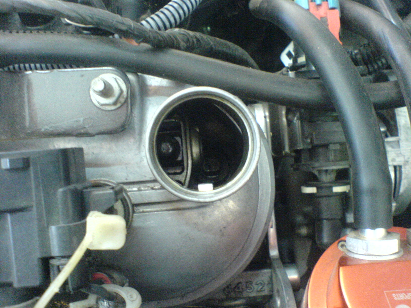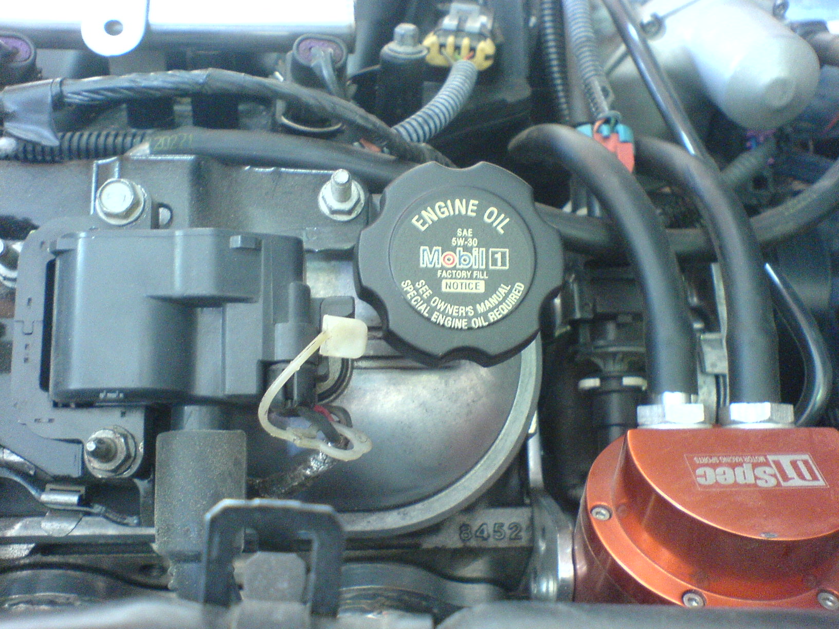 Nur hat der Kunststoff-Stutzen noch eine Sicherung, damit man ihn nicht versehentlich mit herausdreht. Die Sicherung kann man aber leicht wegbiegen, wenn man den Ventildeckel abnimmt.