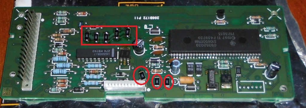 Die Fehlerverursacher sind die 8 SMD Widerstände in der Mitte mit dem Aufdruck "241".
