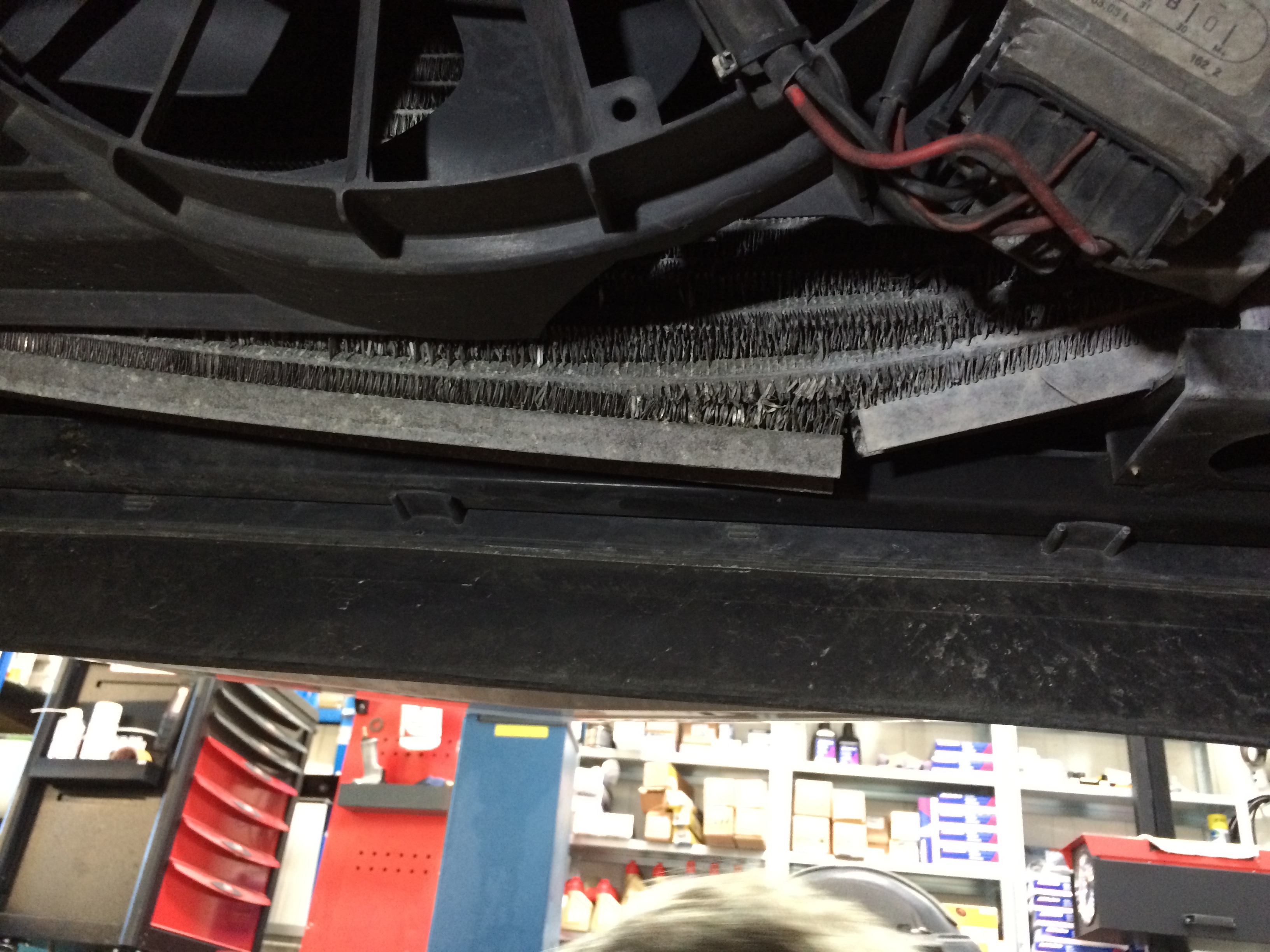 Da viel mir etwas altes ,trockenes Laub bei den Kühlern auf. Fix die Gummilippe/Spoiler abgeschraubt,zum säubern, und dann :