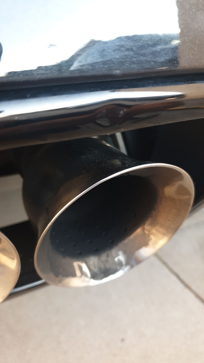 Dabei habe ich mir hinten an der Umrandung der Endrohre eine kleine Macke reingefahren.