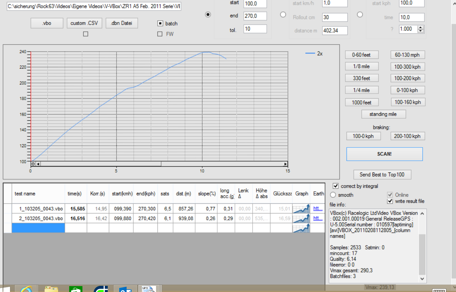 Meine 100-200 Zeit lag knapp über Opa´s Zeit und zwar mit Schaltwechsel kurz vor 200km/h !