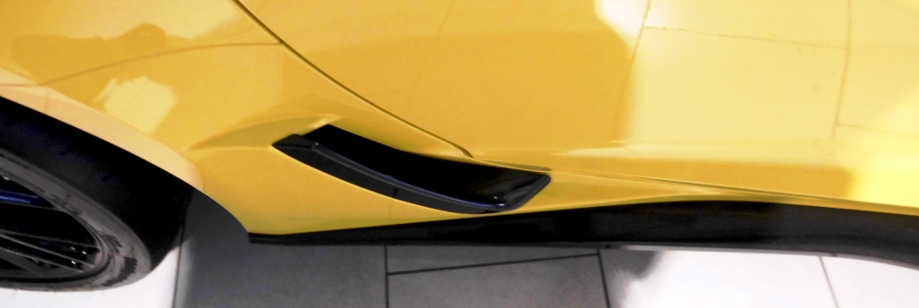Keine Bange - die hässlichen Dinger sind nicht unausweichlich. Kommen wohl erst mit dem Z07-Paket. Das Fahrzeug hat eines, wie man an den Kohlefaserbremsen erkennen kann. Und selbst wenn man die rund 15.000 € Aufpreis für das Paket ausgibt: laut dieser Quelle hier http://www.autohaussteppe.de/fileadmin/Redakteur/Chevrolet/Corvette/Corvette_Z06/Corvette-ZO6-Infoblatt.pdf werden die Fahrzeuge augenscheinlich mit dem Stage-1 Frontsplitter zum Händler geliefert; der Rest wird erst dort angeschraubt.