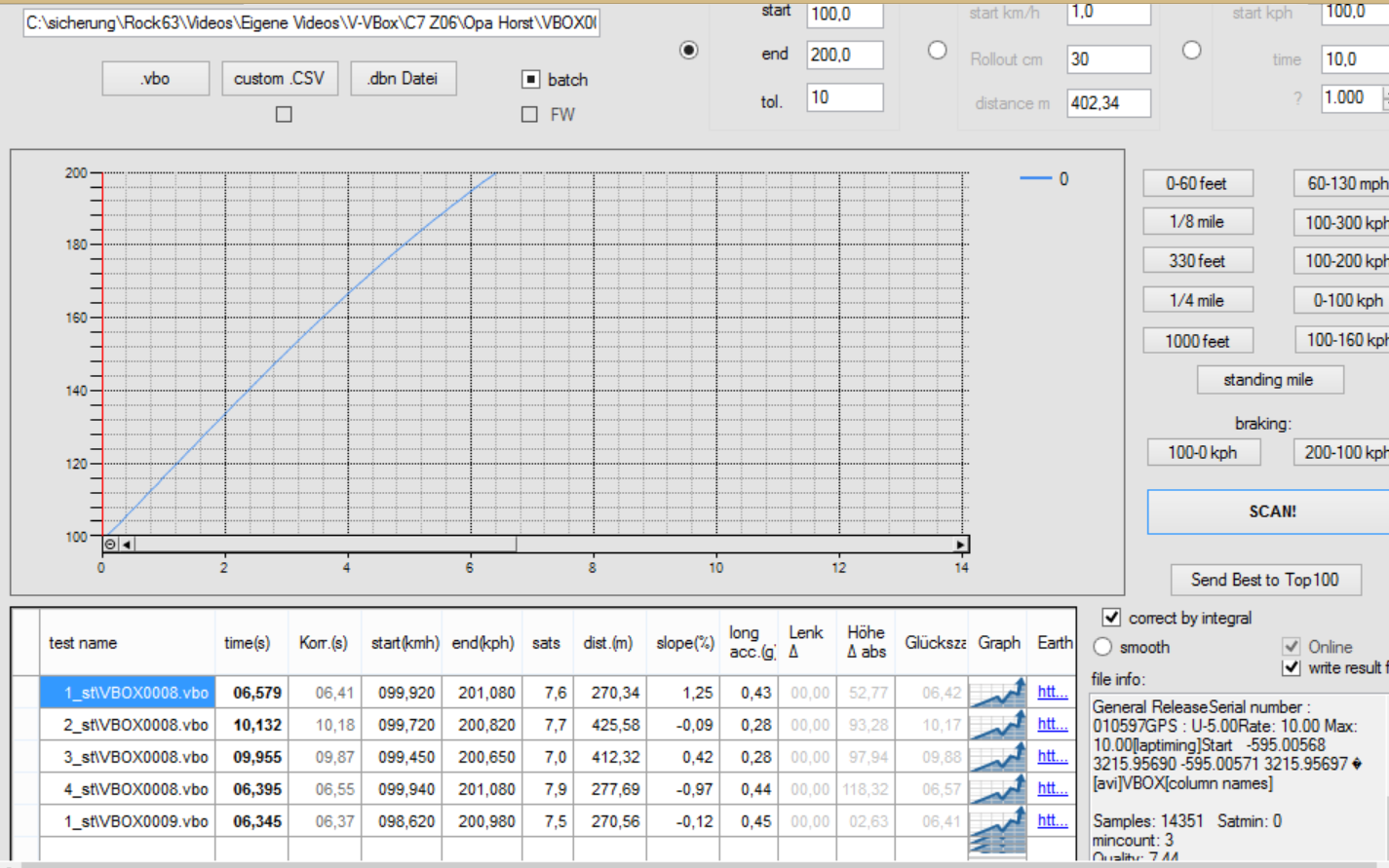 Von 100-200 schafft das Auto auch mehrmals hintereinander zwischen 6,30sec. und 6,60sec. darin sind zwei Schaltvorgänge enthalten und das Getriebe schaltet automatisch im Sportmodus.
