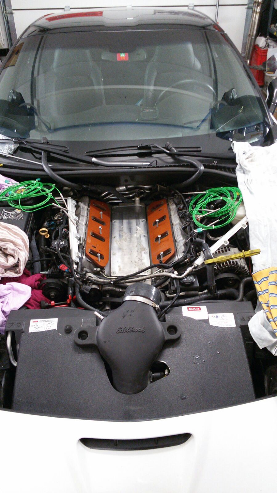Für Messungen ist das Wetter heute leider nicht geeignet aber die kommen in den nächsten Tagen , dazu benötige ich auch andere Messinstrumente um alle 8 Temperaturen gleichzeitig messen zu können und dann mit dem Wert vergleichen welcher der Sensor des Edelbrock ausgibt.