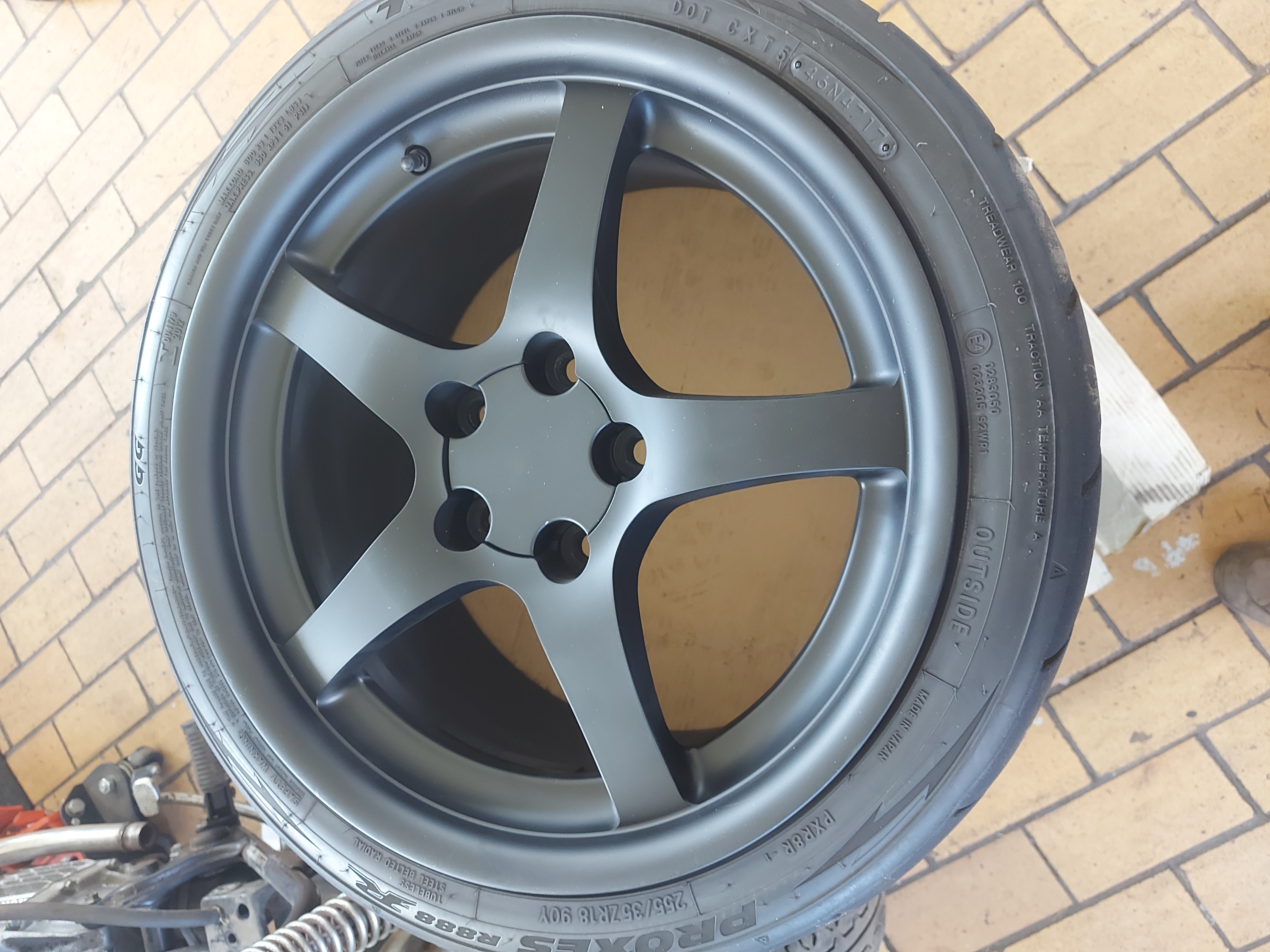 Servus verkaufe hier 4Felgen mit Semi Slicks. Sie waren auf ner C5Z06. Da ich nicht auf ner Rennstrecke fahren werde sind sie über. Frisch gelackt. Haben ca zwischen 5.0 u 5.5mm Profil. 2 x 315/30 ZR18 u 2 x 255/35 ZR18. Also fast neuwertig. Bei Interesse dann gerne Bilder per mail oder WhatsApp. Versand nach Absprache kein Problem. Vhb 1100Euro.