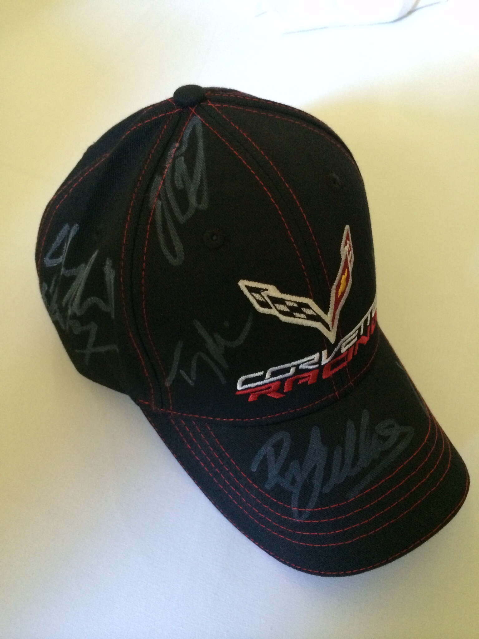 Mit den Unterschriften aller Fahrer, Ron Fellows und Doug Fehan - zeigt die beiden C6.R und Corvette Schrift und Logo.