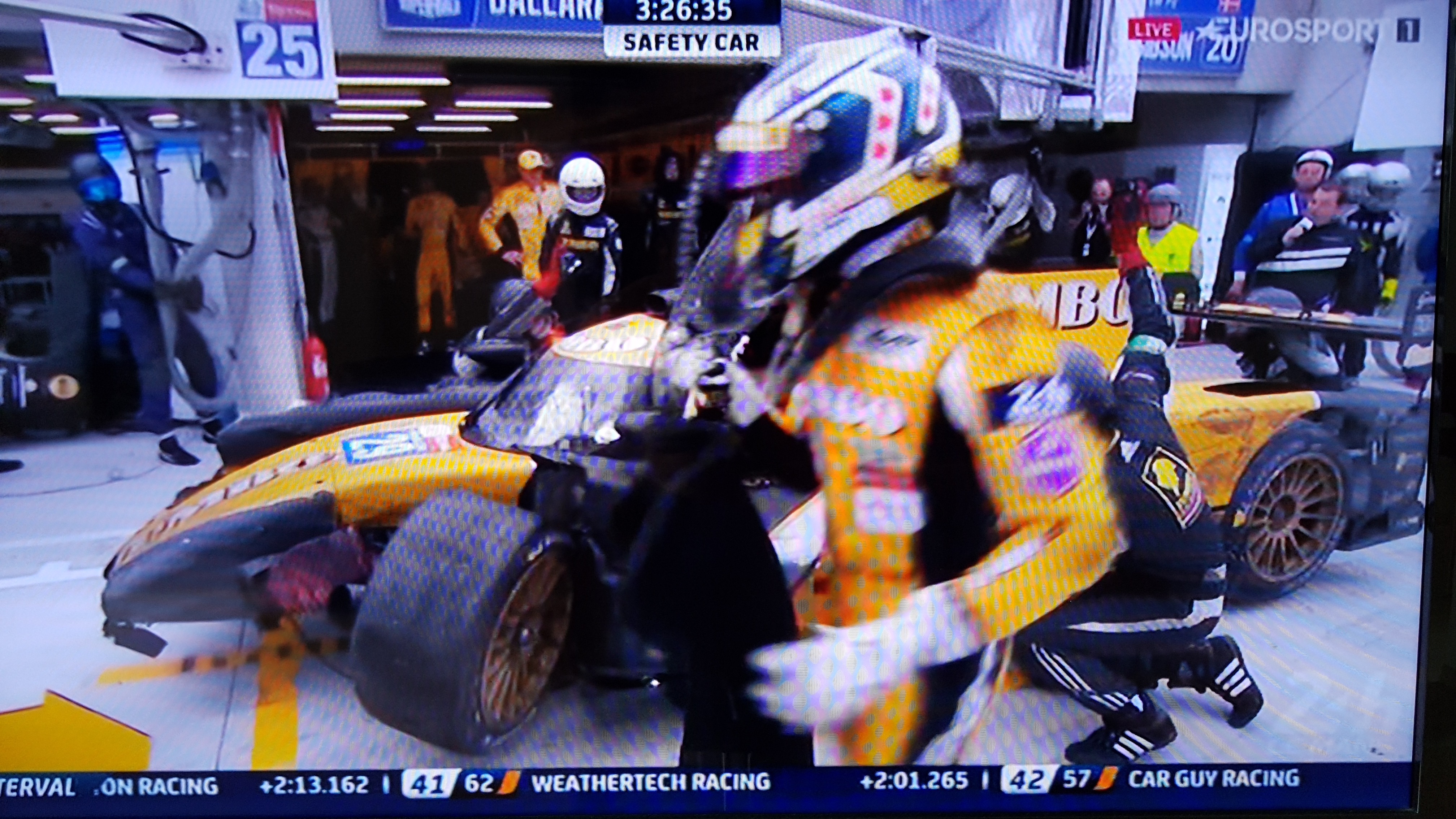 Die Corvette hatte einen Unfall, steht in der Box. Verkackt 6 Minuten und eine Runde Rückstand