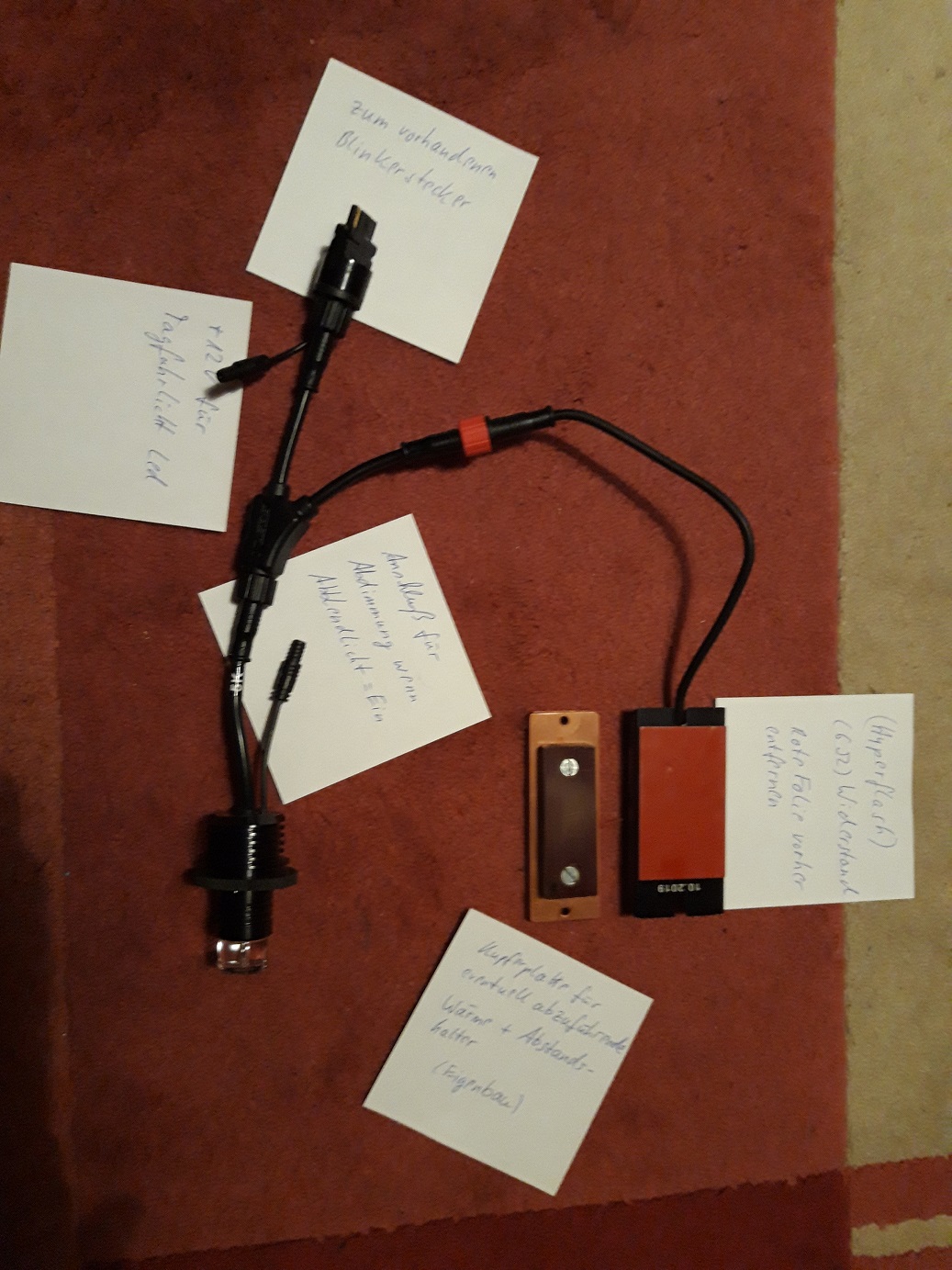 Das schwierigste an der Sache war eigentlich, den Plus irgendwo abzunehmen, weil ich leider keine beleuchteten Sidemarker vorne habe. Würde das gerne noch nachrüsten wenn jemand nen Tip hätte. Dazu gibs ja bereits Bilder weiter oben.