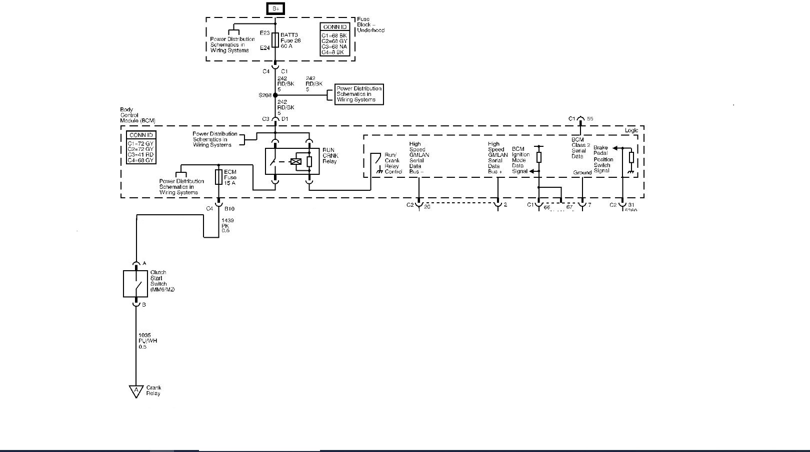 Durch drücken des Startknopfes wird ein 1500 Ohm Widerstand zwischen Pin 7 und Pin 66 des oberen, linken Steckers am BCM geschalten.