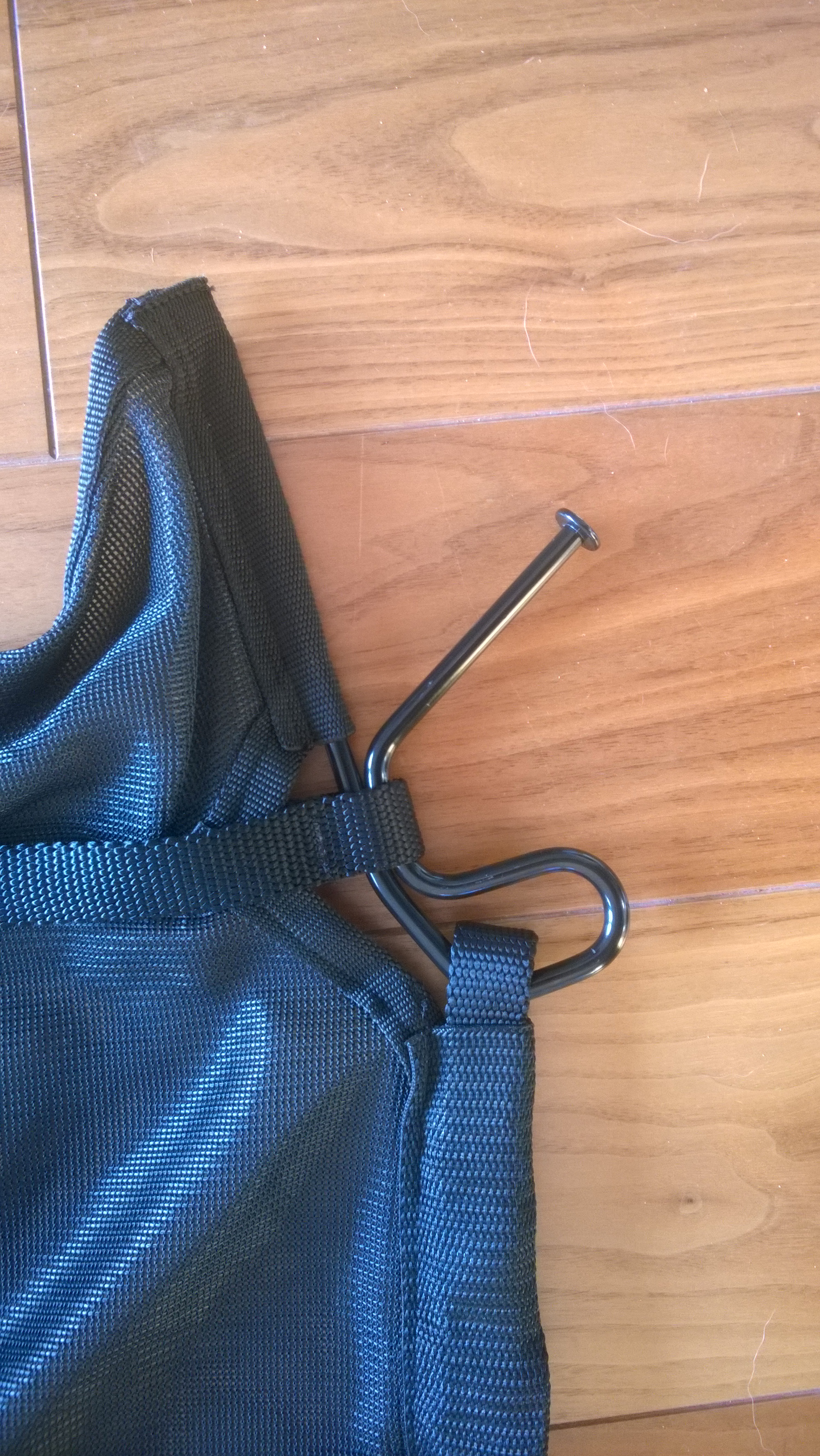 Das Netz wird hinten an 2 Haken rechts und links eingehängt..............................gewaschen oder ungewaschen!
