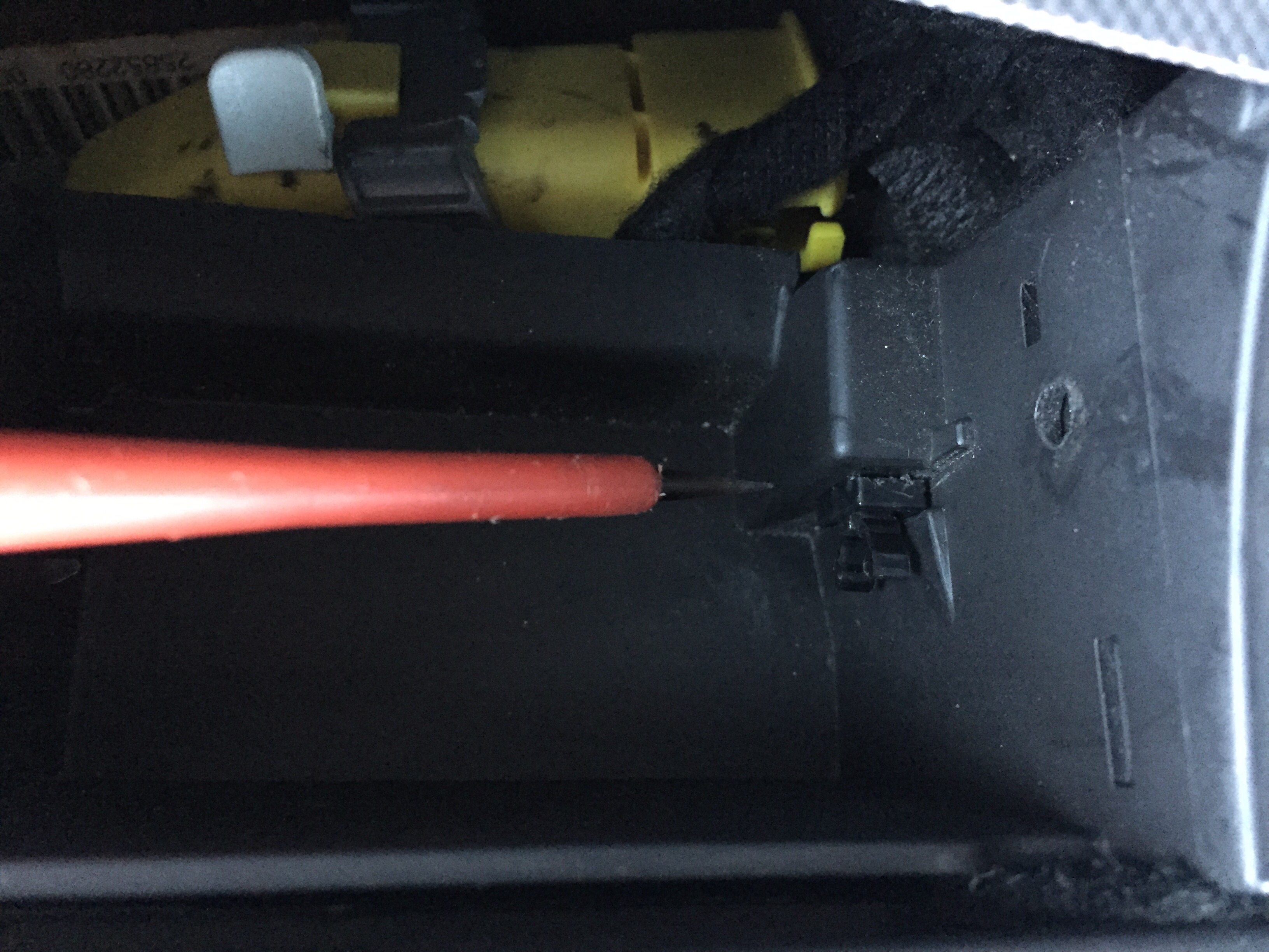 Habe die Türe mittels Schlitz Dreher ausgeklipst un dann dahinter diesen kleinen Halter der Türe ebenfalls mit ausgeklipst.