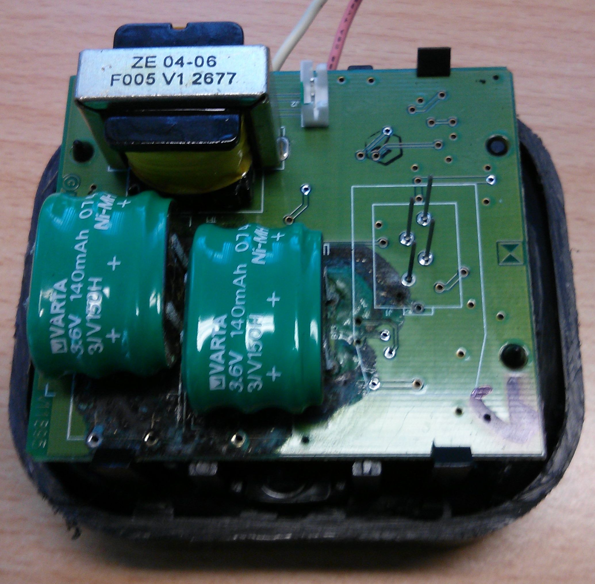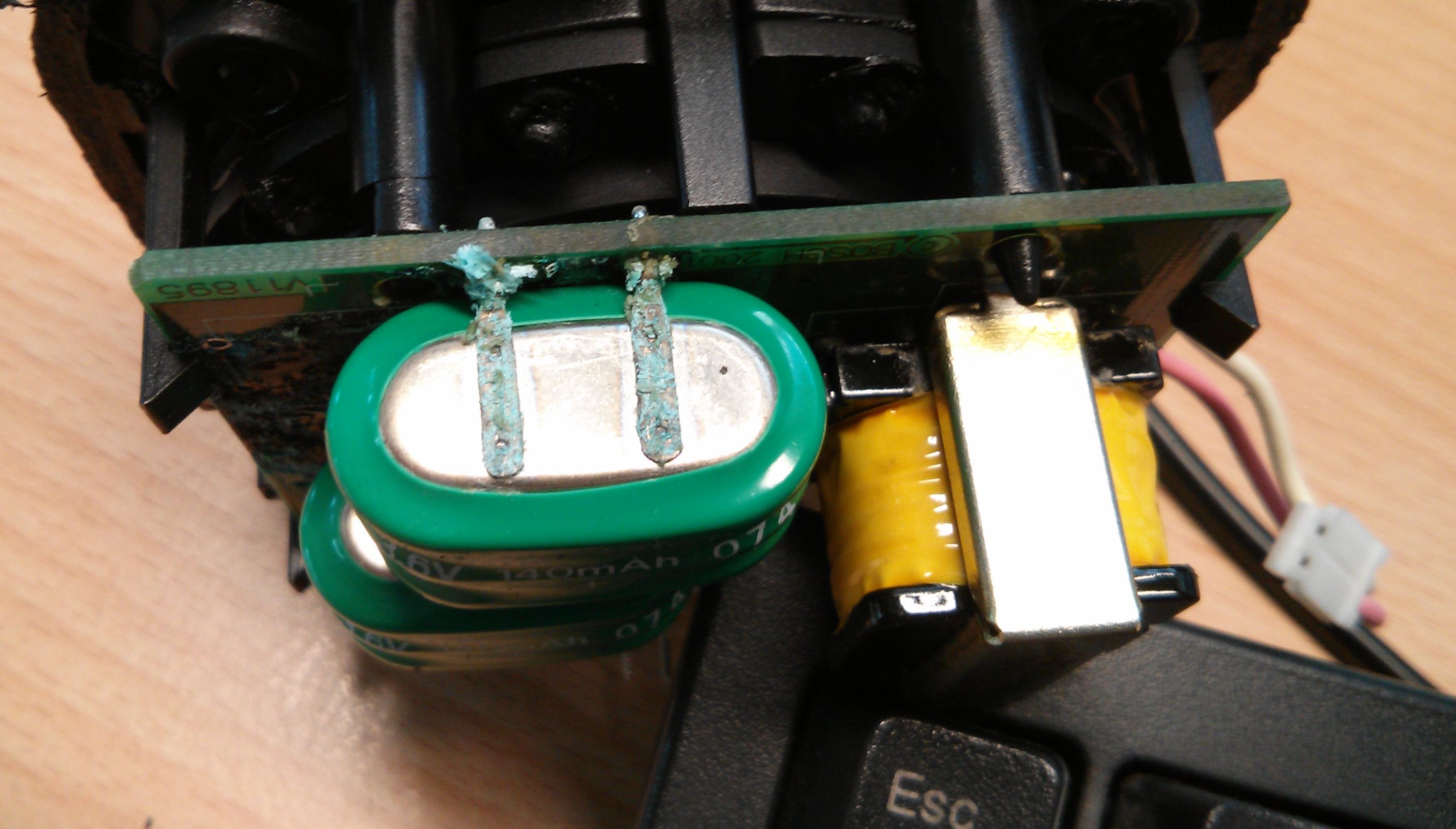 Innen bot sich das gleiche Bild. Ausgelaufene Akkus, die die Platine versifft haben.