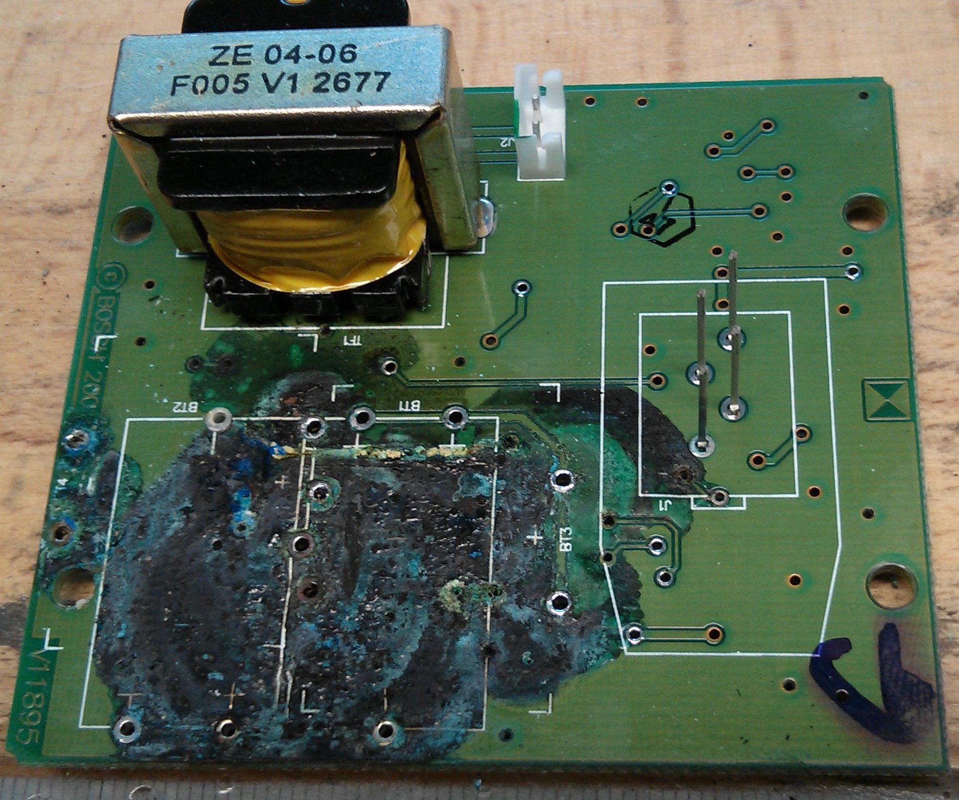 Wie man an meinem Beispiel gesehen hat kann es sein, daß die Akkus ausgelaufen sind und die Platine vom Siff aus den Akkus angegriffen wurde.