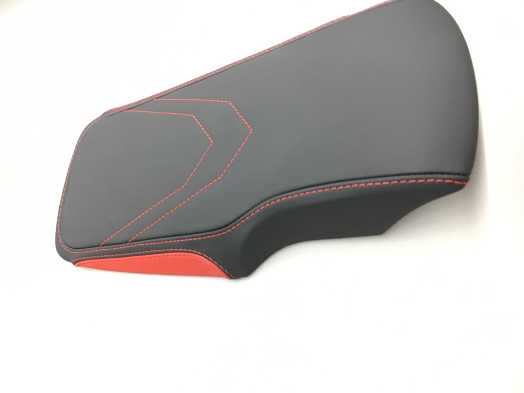 Die Teile wurden teilweise in Bicolor Optik gestaltet. Verwendet wurde Nappaleder glatt in Schwarz und Rot, dazu durchgängig eine rote Naht.