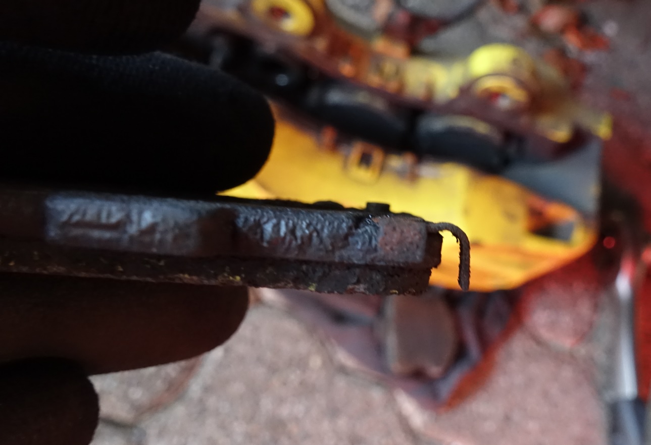 Der Belag im BIld wurde Ende Juli verbaut, ist dann etwas Landstraße/Autobahn gefahren. 13 Runden Salzburgring bis zur roten Flagge haben ihn dann wie folgt aussehen lassen. Es ist auch alles hinüber, auch die Staubschutzdichtungen der Bremskolben haben sich aufgelöst. Den verbrannten Lack auf den Belägen habe ich so auch noch nicht gesehen, bei anderen (leistungsschwächeren) Fahrzeugen mit den Belägen - welche ebenfalls auf Rennstrecken unterwegs waren - hält er sich gut.