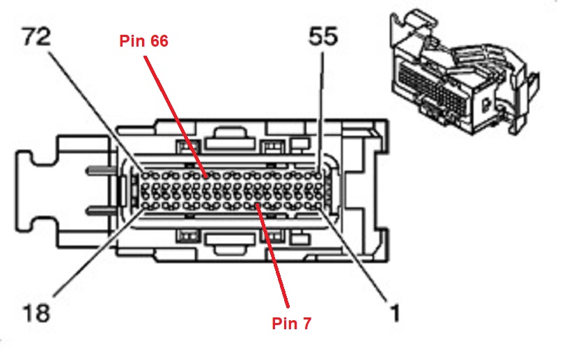 Also habe ich das Multimeter auf Pin 7 und Pin 66 des oberen BCM-Steckers gelegt und den Widerstand gemessen.