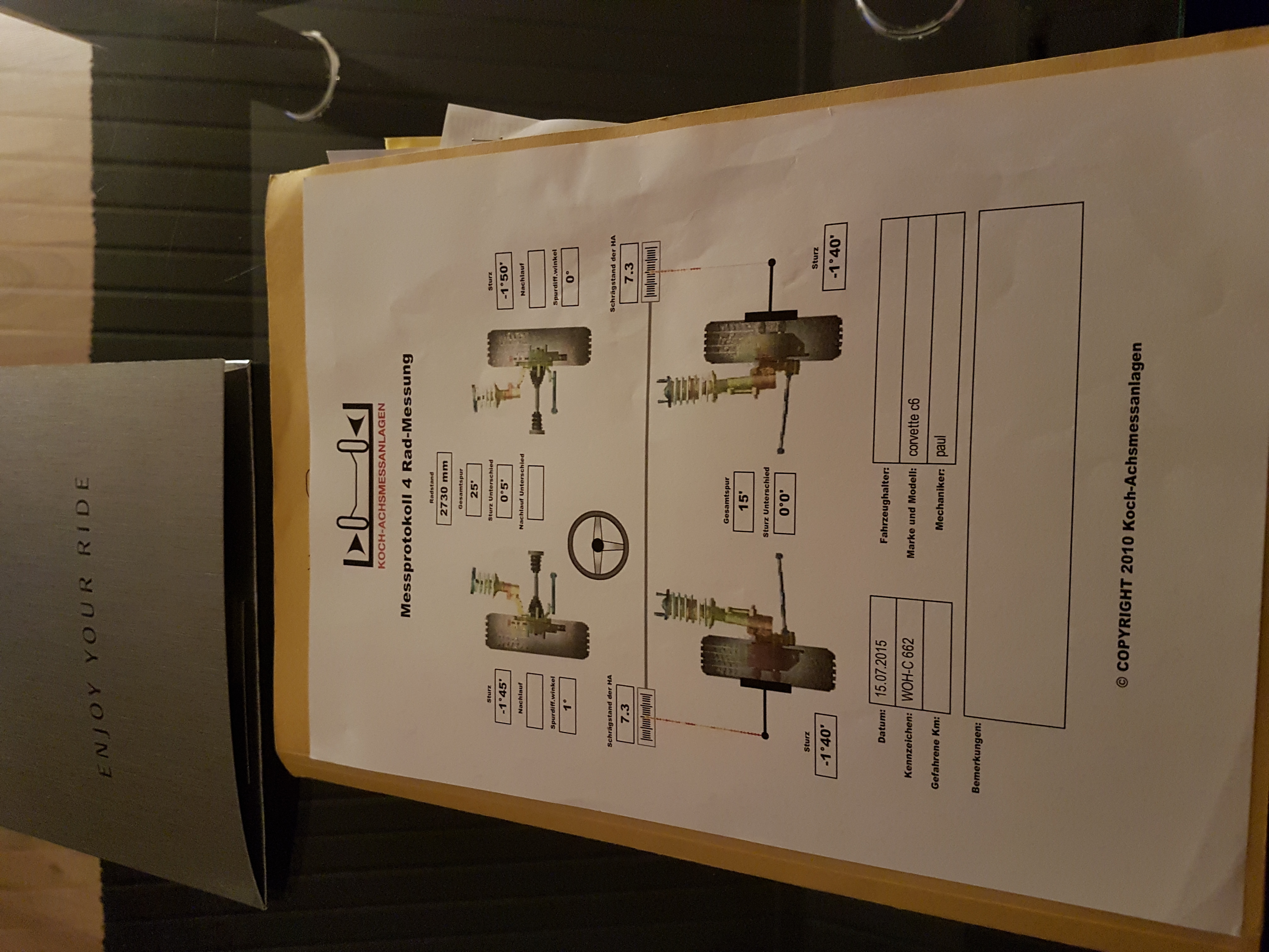Desweiteteren habe ich mit der rechten hinteren Felge mal leicht einen bordstein geküsst in der Fahrt, werde ihn also neu vermessen lassen müssen.