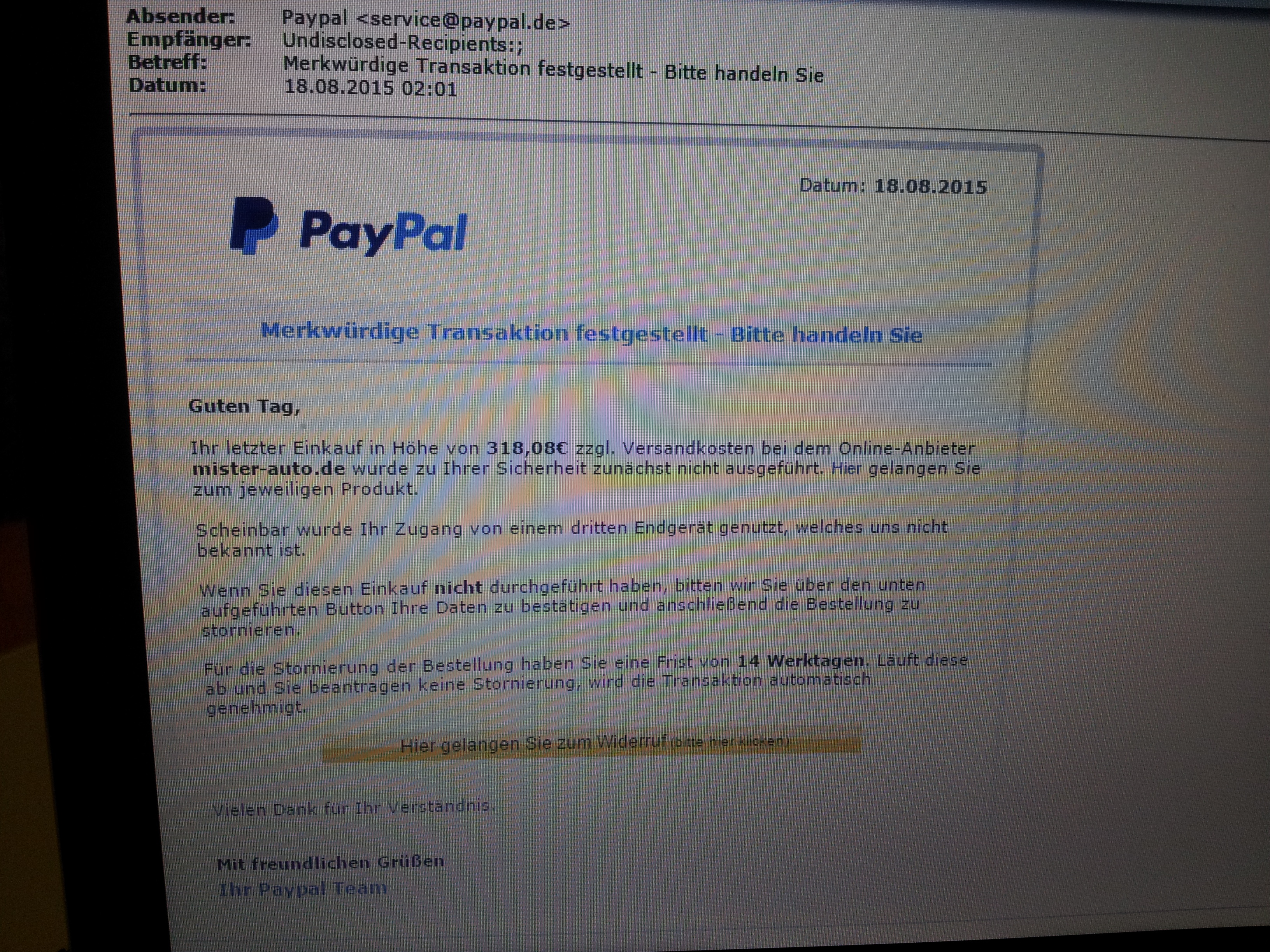 Ich würde so einen Link nie über eine Email öffnen sondern dann direkt auf die PayPal oder was auch immer Seite gehen. So wurden alle bei uns zuhause gebrieft.