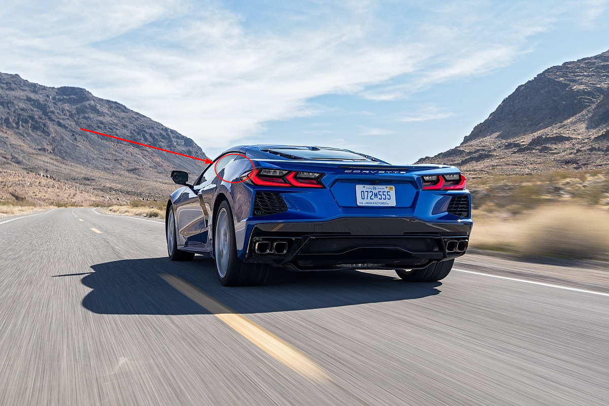 Ich vermute, das ist dem Umstand geschuldet, dass GM unbedingt noch einen zweiten "Kofferraum" im Heck bzw. eine Ablage fürs Targa-Dach haben wollte. Das ging leider auf Kosten des Designs. Aber wir groß wäre der Aufschrei gewesen, wenn das Targa-Dach keinen Platz gefunden hätte