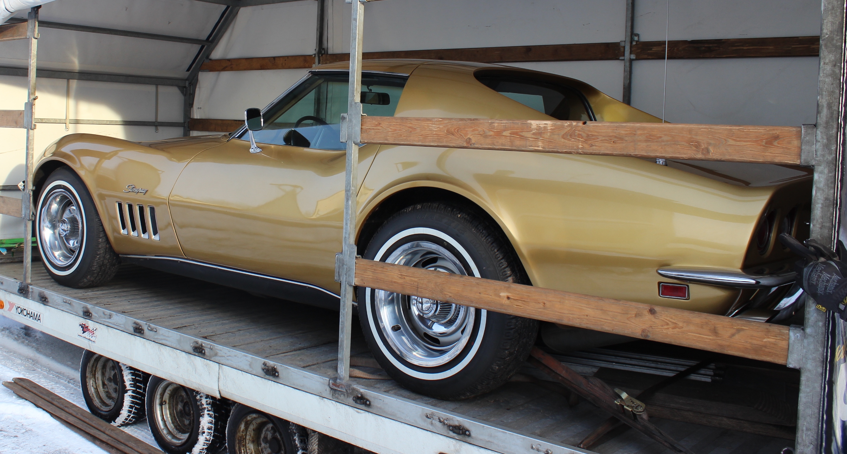 Fahrzeug: Corvette C6 gelb, Ford Transit weiß
