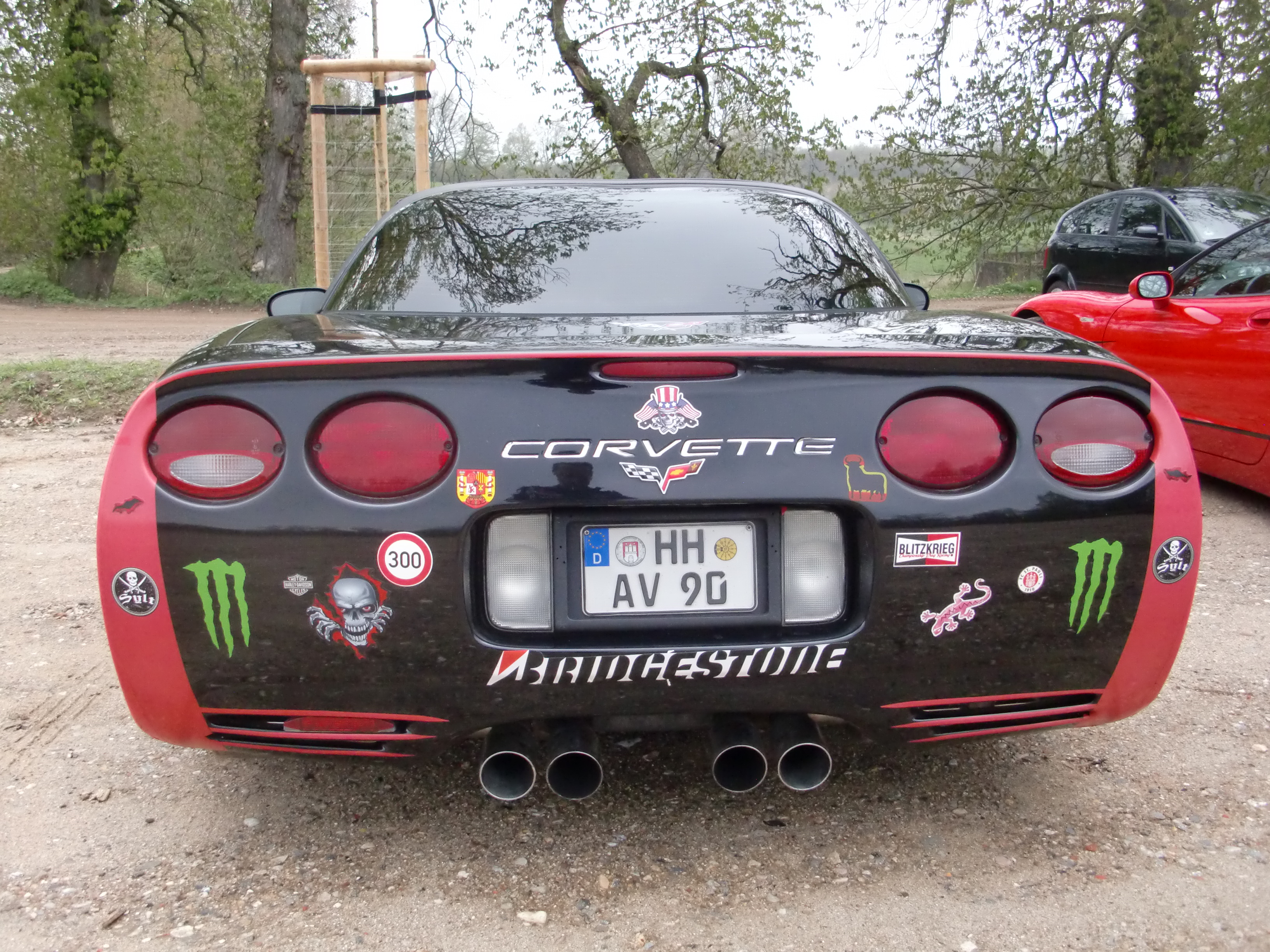 Mit Isolierband gezogene Zierstreifen, Tankstellenaufkleber, Silverfolie, Kunststoffembleme usw usw…. Ich weiss wirklich nicht, warum man das seiner Corvette antut…