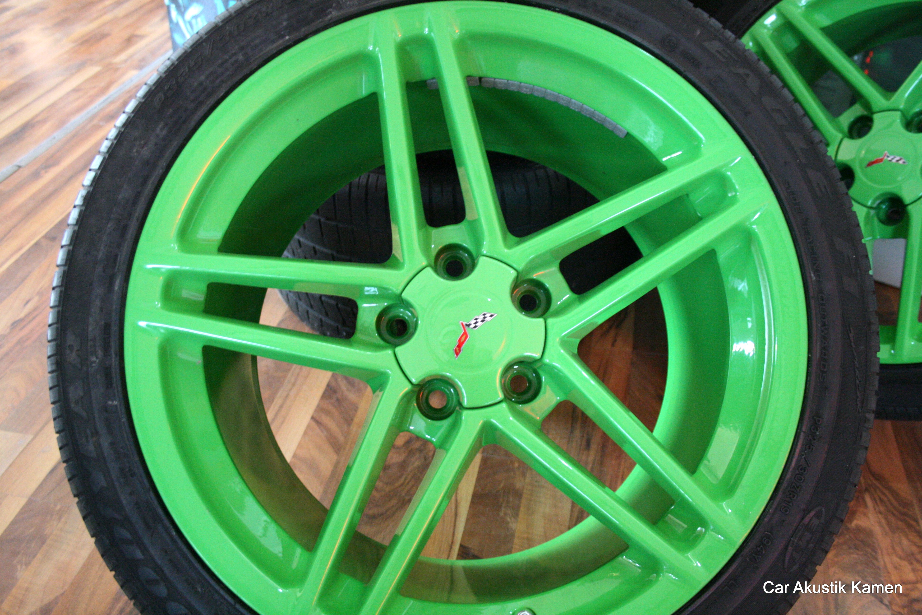 C6Z06 oroginal Reifen Goodyear auf der Z06 Felge in Kawasakigrün gepulvert (foto)