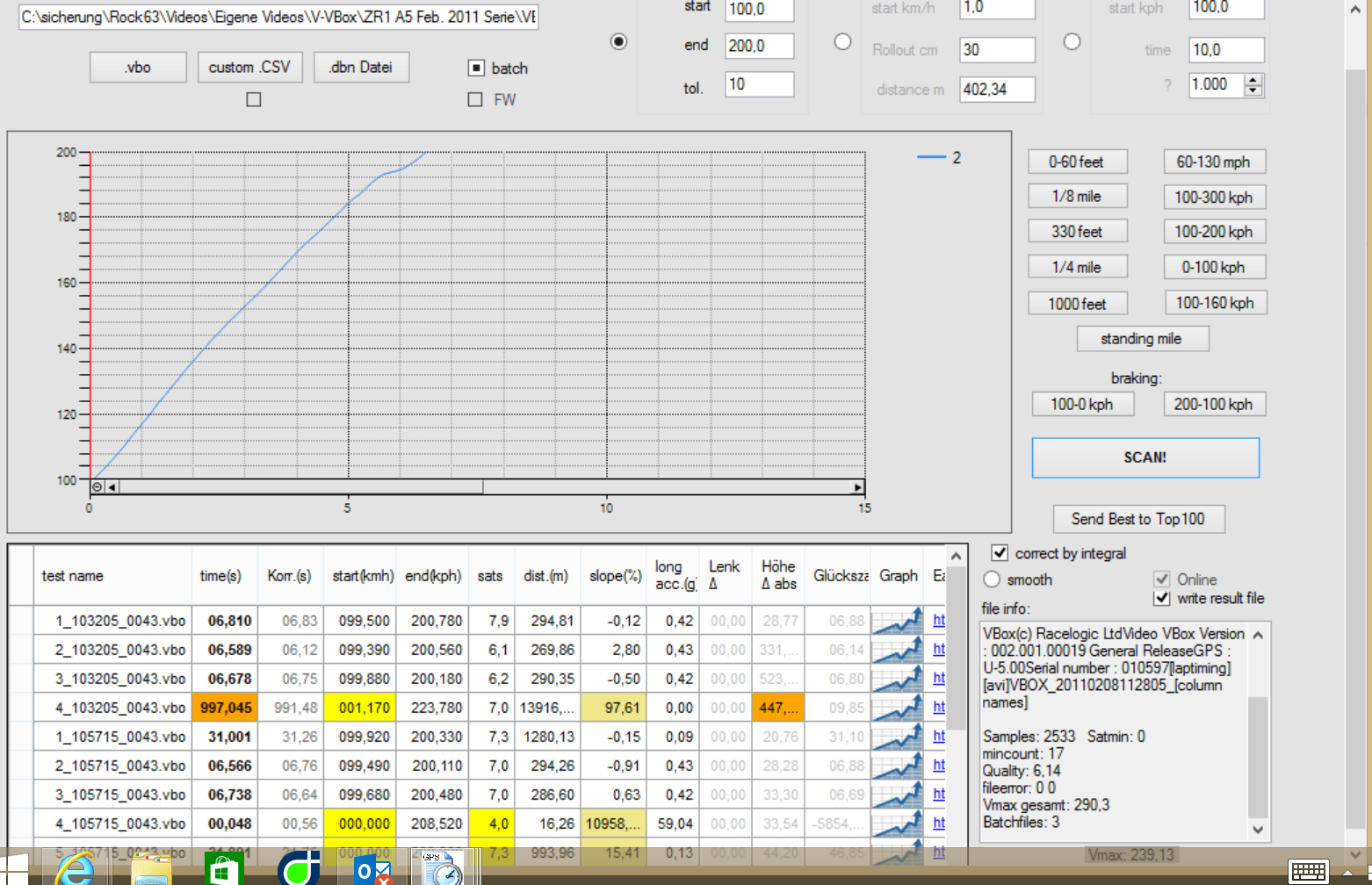 Meine 100-200 Zeit lag knapp über Opa´s Zeit und zwar mit Schaltwechsel kurz vor 200km/h !