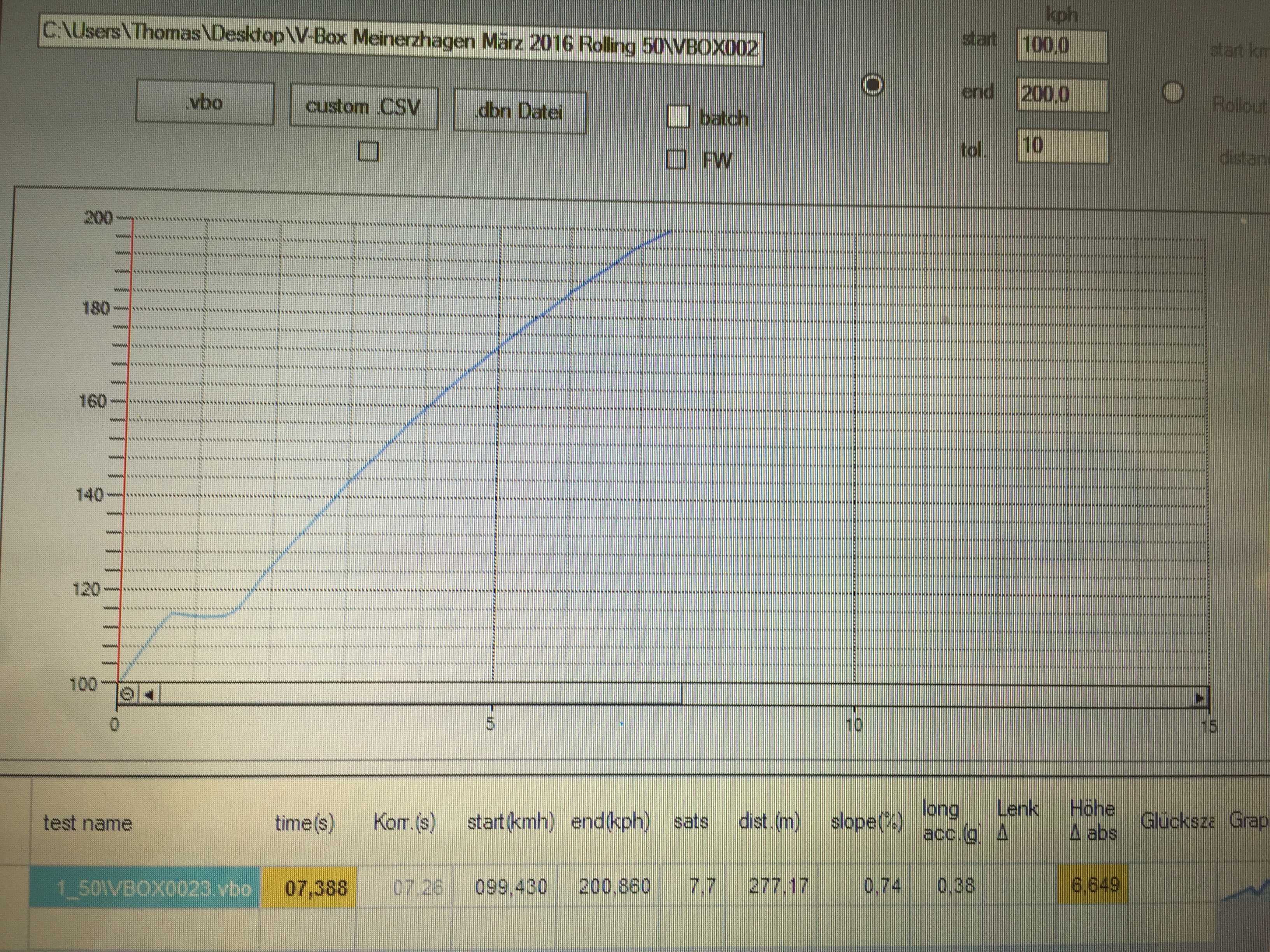 Ich hab auch ein GoPro Video von der Anzeige gemacht nur die VVBOX hatte ich nicht an Bord, es ging aber auch nicht um Zeiten!