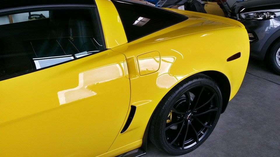 Fahrzeug: Corvette C6 gelb, Ford Transit weiß