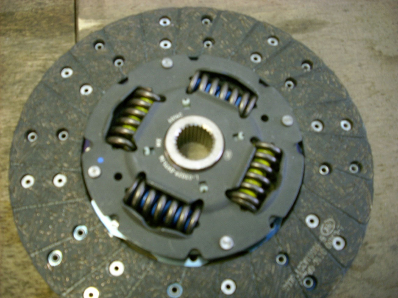 2) Zwei der inneren Federn der Kupplungsscheibe sind blau, die anderen beiden gelb.