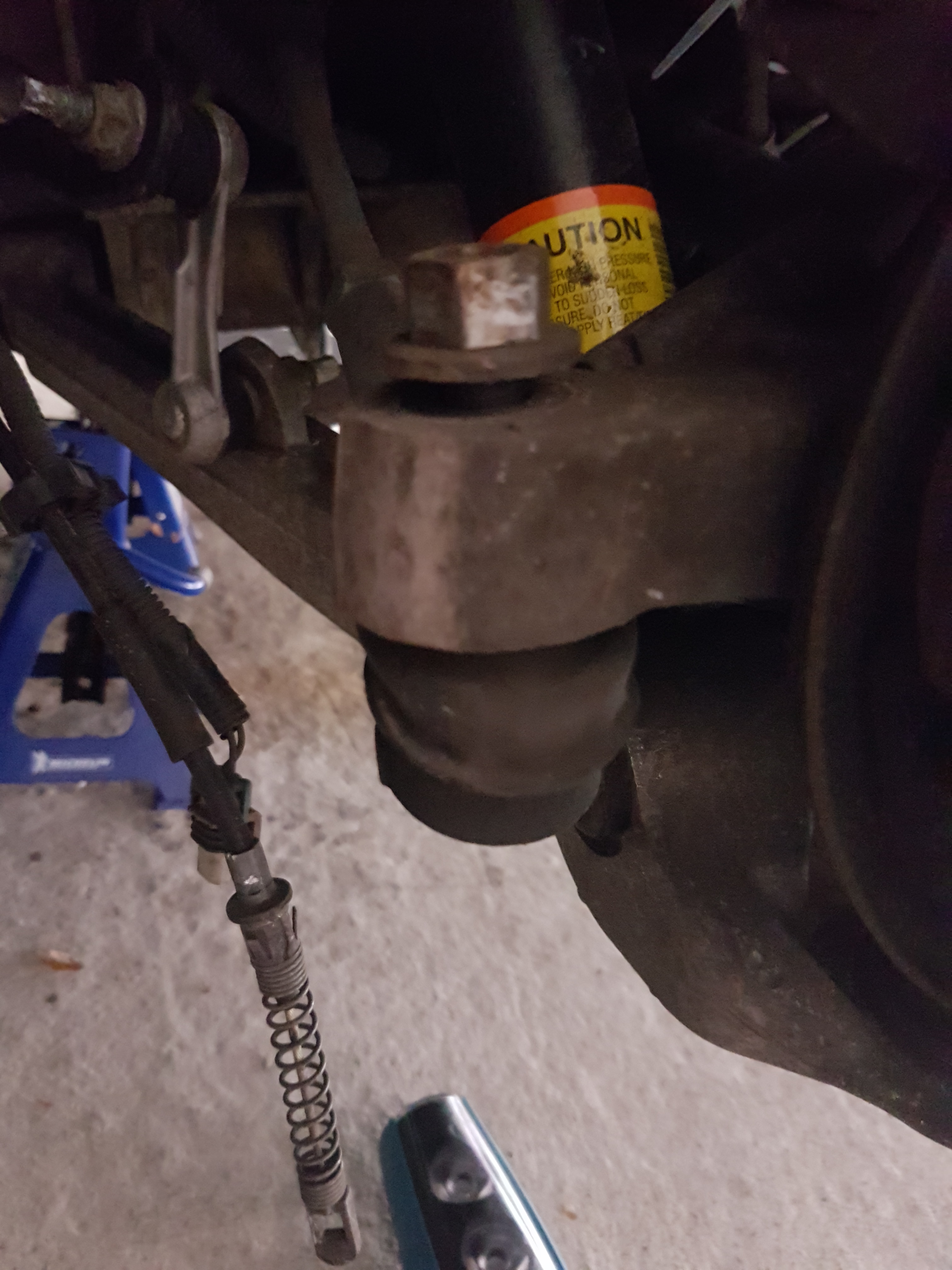 Das Kugelgelenk löst sich nicht und der Abzieher passt nicht, weil die Achse im Weg ist. Ich hab nach ner halben Stunde aufgegeben.