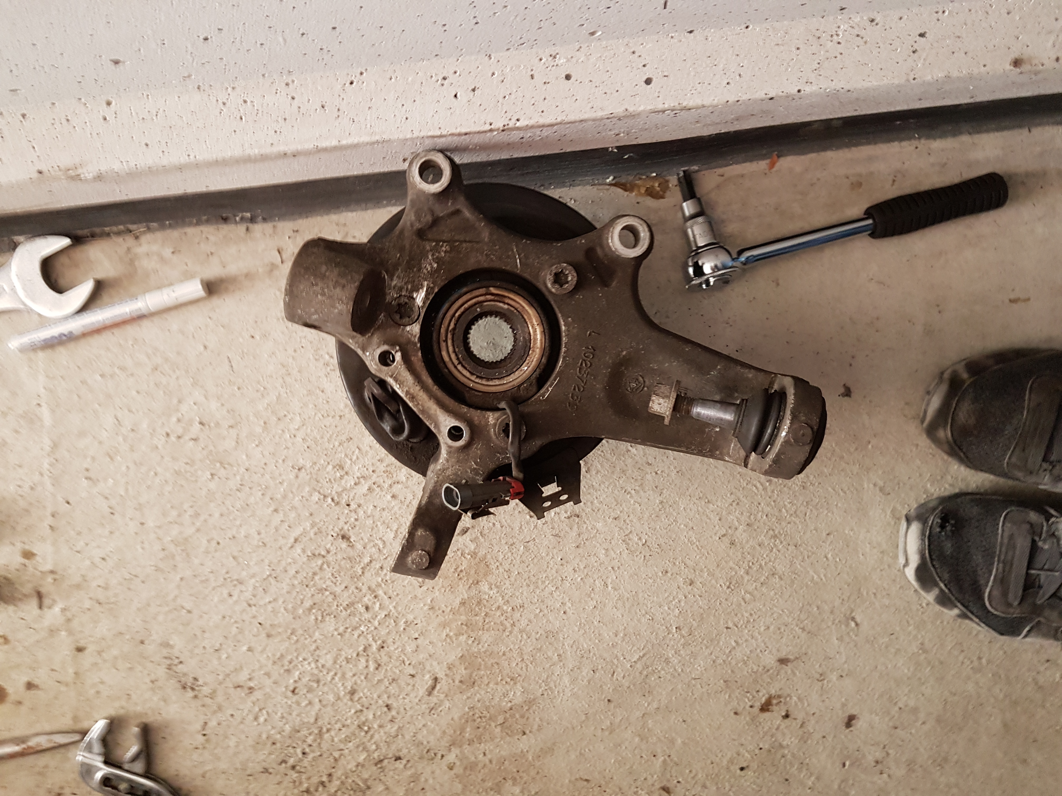 Fahrerseite doch nach der gleichen Methode gemacht. In 45 Minuten ist der Achsschenkel ab, ging so von der Hand, wobei die Bremsscheibe auf den Klötzen hing und mich 5-10 Minuten extra gekostet hat.