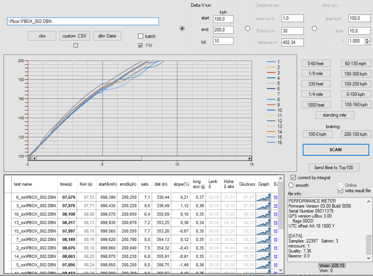 ) Auch bei meinen Vergleichen gab es (zum Teil deutliche) Abweichungen vom PDR zur VVBOX (hatte ich in beiden Fahrzeugen), allerdings hab ich mich nicht wirklich dafür interessiert, weil ich seit Jahren mit den Racelogic Produkten arbeite und diesen auch vertraue.