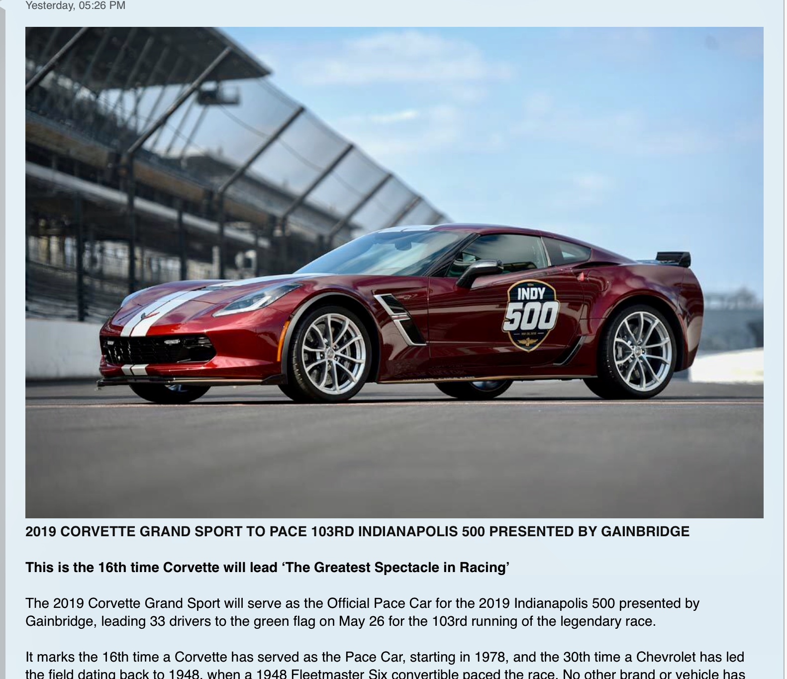 Habe gerade Bilder der neuen Grand Sport Pace Car 2019 gesehen und wollte die Euch nicht vor enthalten. Hoffe doch das man die mal kaufen kann. Gruss Martin