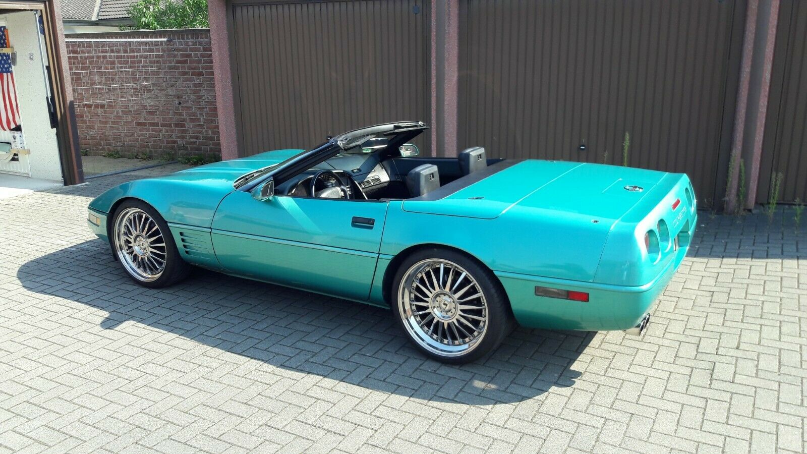 Nun haben wir neulich unverhofft in Mobile.de eine schöne C 4 Cabrio 1991 mit schwarzem Verdeck und schwarzen Leder Sport Sitzen und genau in der Farbe die Gaby so gut gefällt, in Turquoise Metallic gefunden.