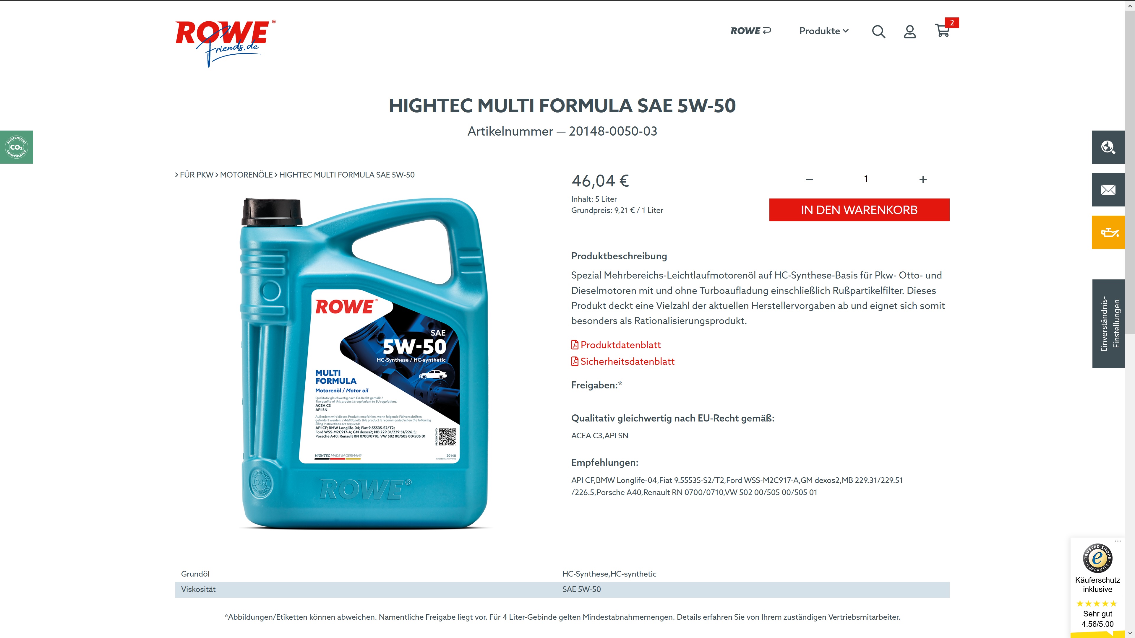 für alle die auf der Suche nach einem 5W-50 Motoröl mit Dexos2 Freigabe sind, habe ich das hier gefunden.