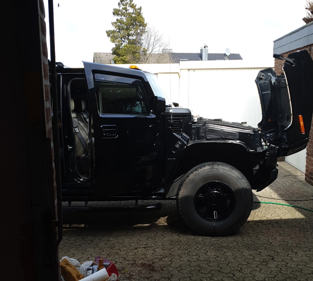Der Michael Manousakis hat auch verkürzte Hummer gebaut, wenn der normale H1 dem Kunden zu lang war, ca.80cm den Rahmen gekürzt, und den Aufbau. Die Breite und das originale Erscheinungsbild von vorn blieb allerdings erhalten, sonst wärs ja kein H1 mehr,