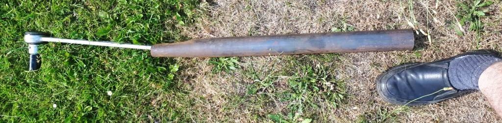 Ich habe mir von einer LKW Bude eine Zoll Ratsche geliehen und ein Meter Rohr.
