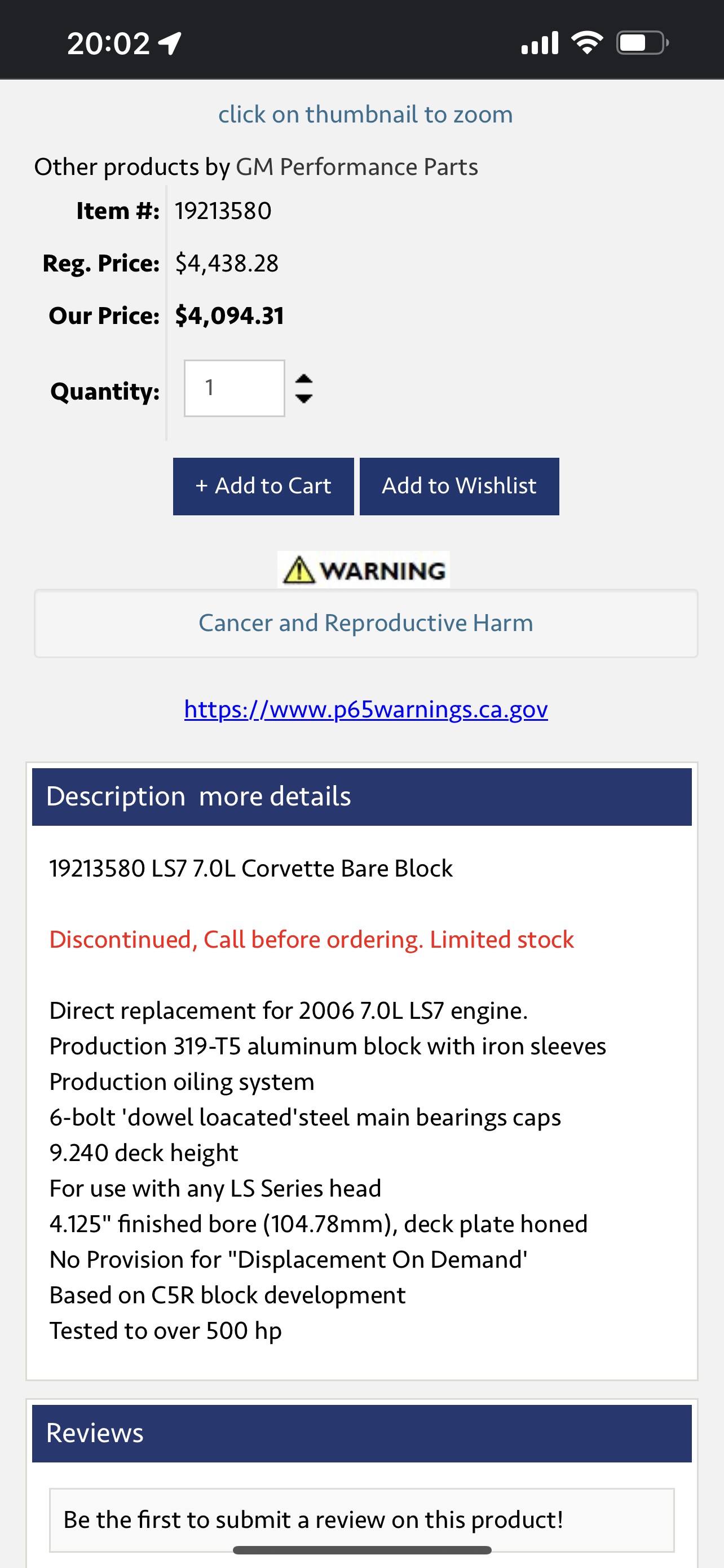 es gibt keine neuen LS7 Blöcke mehr zu kaufen, oder long oder shortblocks. Long blocks gab es sowieso nie von GM, short blocks auch nie !