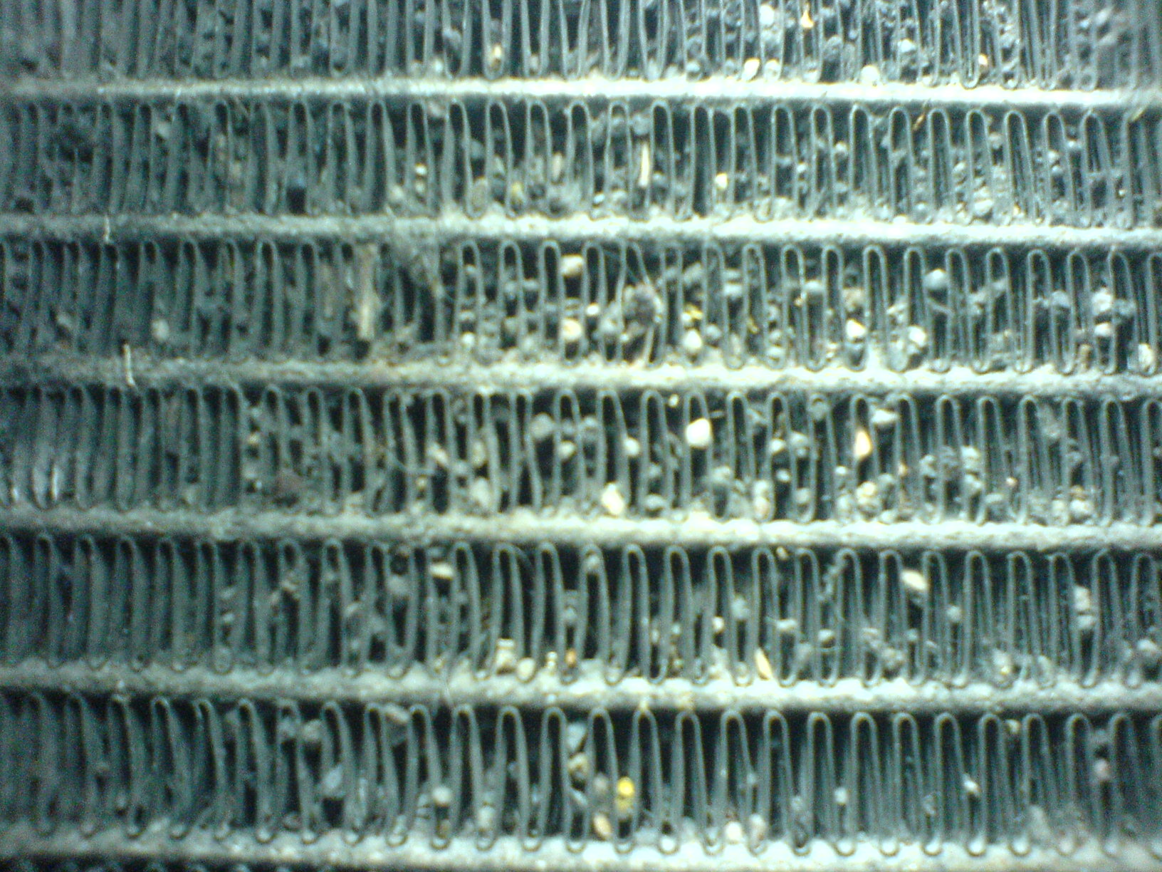 So sah bei mir der Wärmetauscher der Klimaanlage auch aus. Und die Lammellen waren schon aufgelöst nach 26 Jahren. Beim Ausblasen zerbröselten die, ich konnte die Blechlamellen zwischen den Fingern zerreiben. Da habe ich nach dem Reinigen eingesehen, der Klimatauscher vor dem Kühler muss auszutauscht werden.