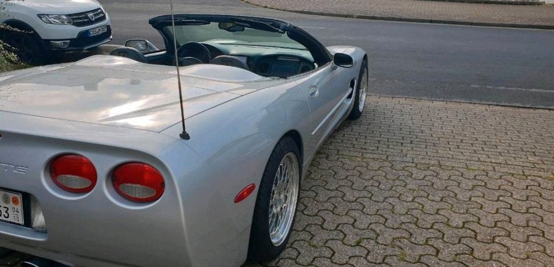 2001er US convertible. 2009 aus Florida geholt, seitdem auf mich zugelassen mit Saisonkennzeichen und bei Molle (corvetteproject) in Betreuung. Silbern, schwarzes Verdeck, innen schwarz. Unverbastelt, aber vorne helle Blinker, Supersprint Endschalldämpfer. Auf dem Tacho sind ca. 46.000km mehr als tatsächliche Laufleistung da die Tachoeinheit auf EU gewechselt wurde, auch bei corvetteproject. Checkheft gibt es natürlich bei einem fast 25 Jahre alten echten Ami nicht aber ich hab alle Arbeiten (sogar die kleinste Birne ) akribisch tabelliert.