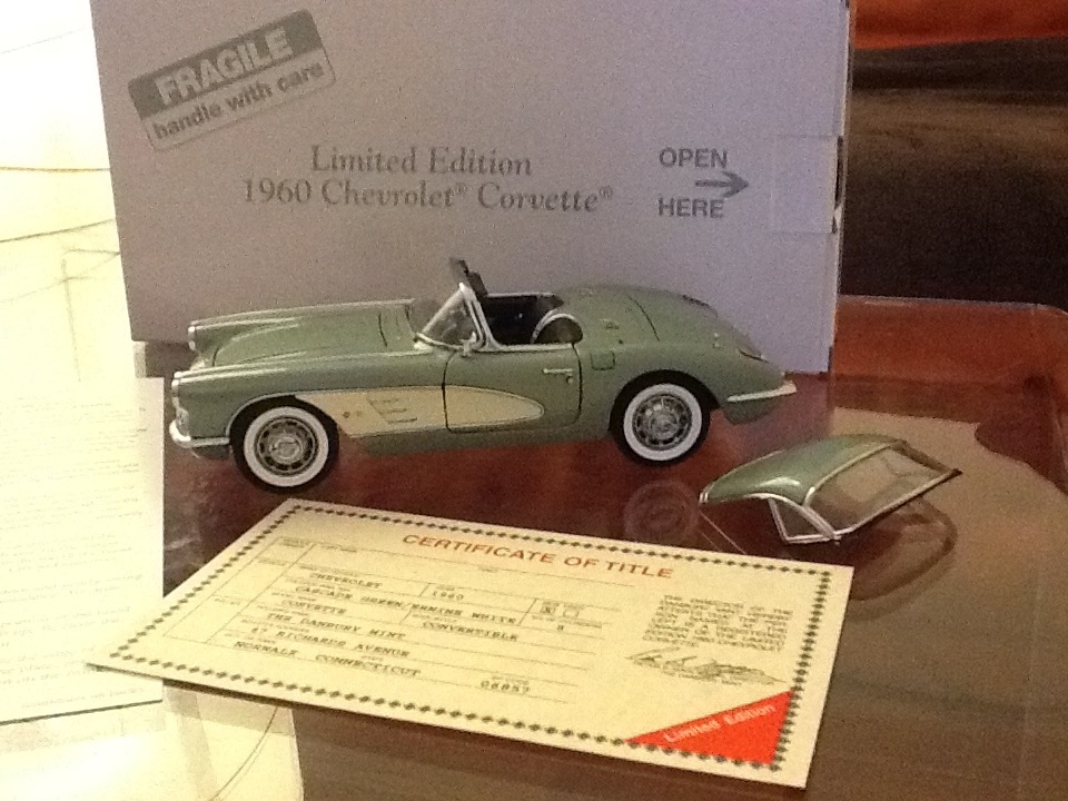7) 1960er Corvette Convertible, Limited Edition von 5000, in CASCADE GREEN/ERMINE WHITE von Danbury Mint.