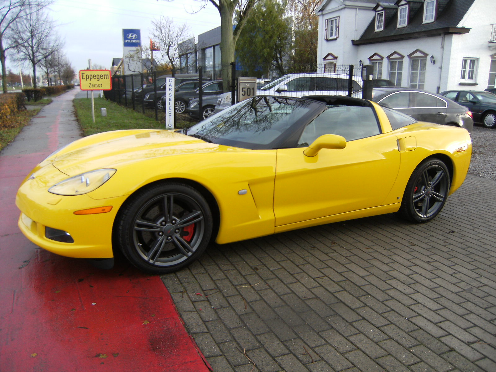 Fahrzeug: Corvette C6 gelb, Ford Transit weiß