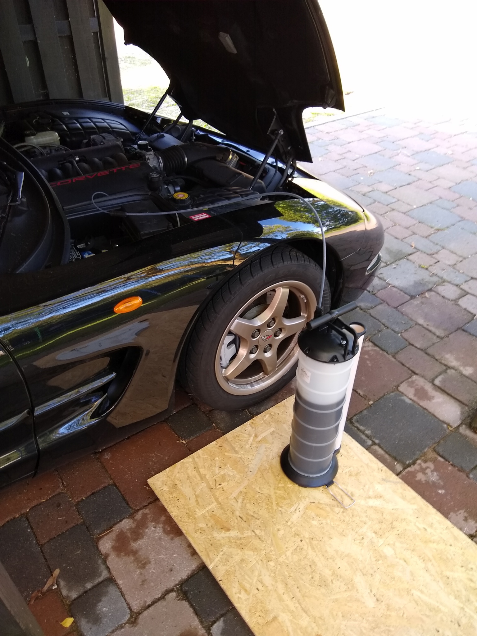 Ablassschraube ist sehr fest an meiner C5, vielleicht geht sie mit mehr Kraft bzw. Schlagschrauber auf, vielleicht reißt es mir aber auch das Gewinde raus. Ich will da mitten in der Saison nichts riskieren, aber trotzdem jetzt das Öl wechseln. Im Nachbarforum kam der Tipp mit Absaugen.