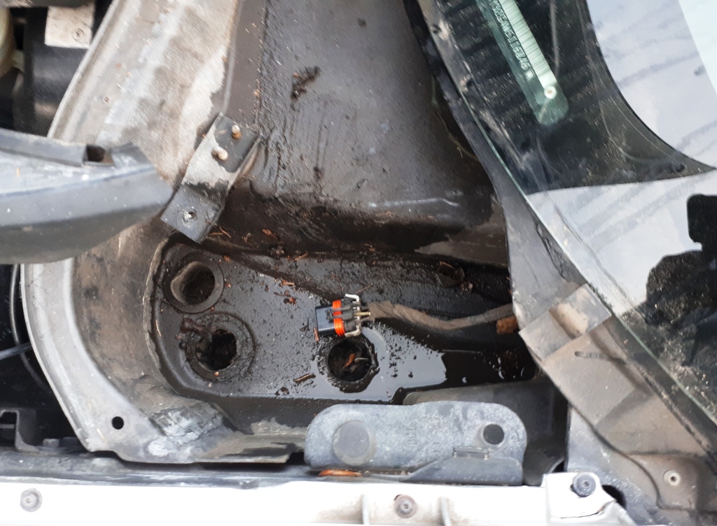 Und das gesamte Wasser fießt über den Scheibewischermotor und durch die 3 Abläufe in den Kotflügel.