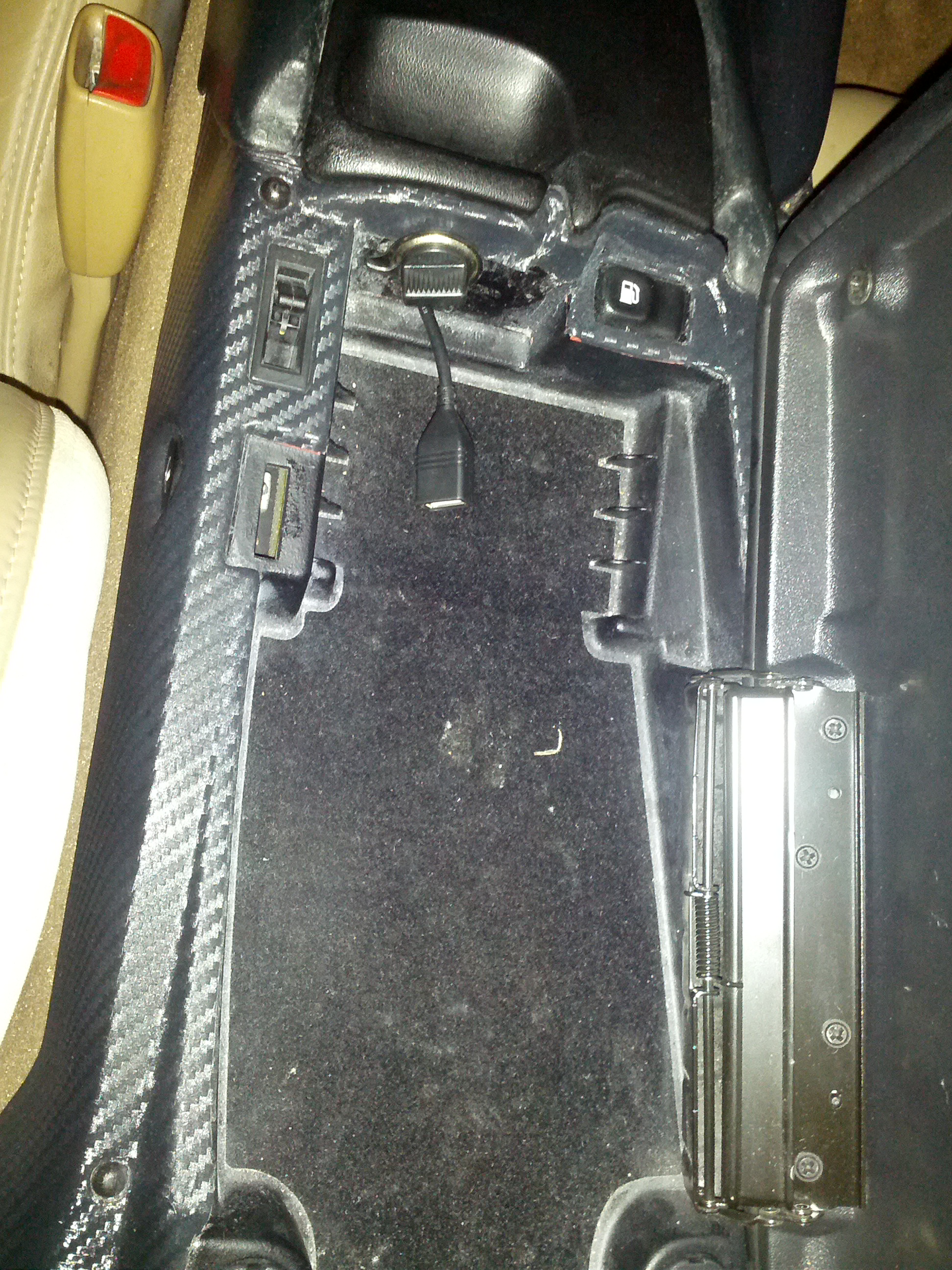 das usb kabel das hinten raus kommt hab ich in das fach in der mittelarmlehne verlegt