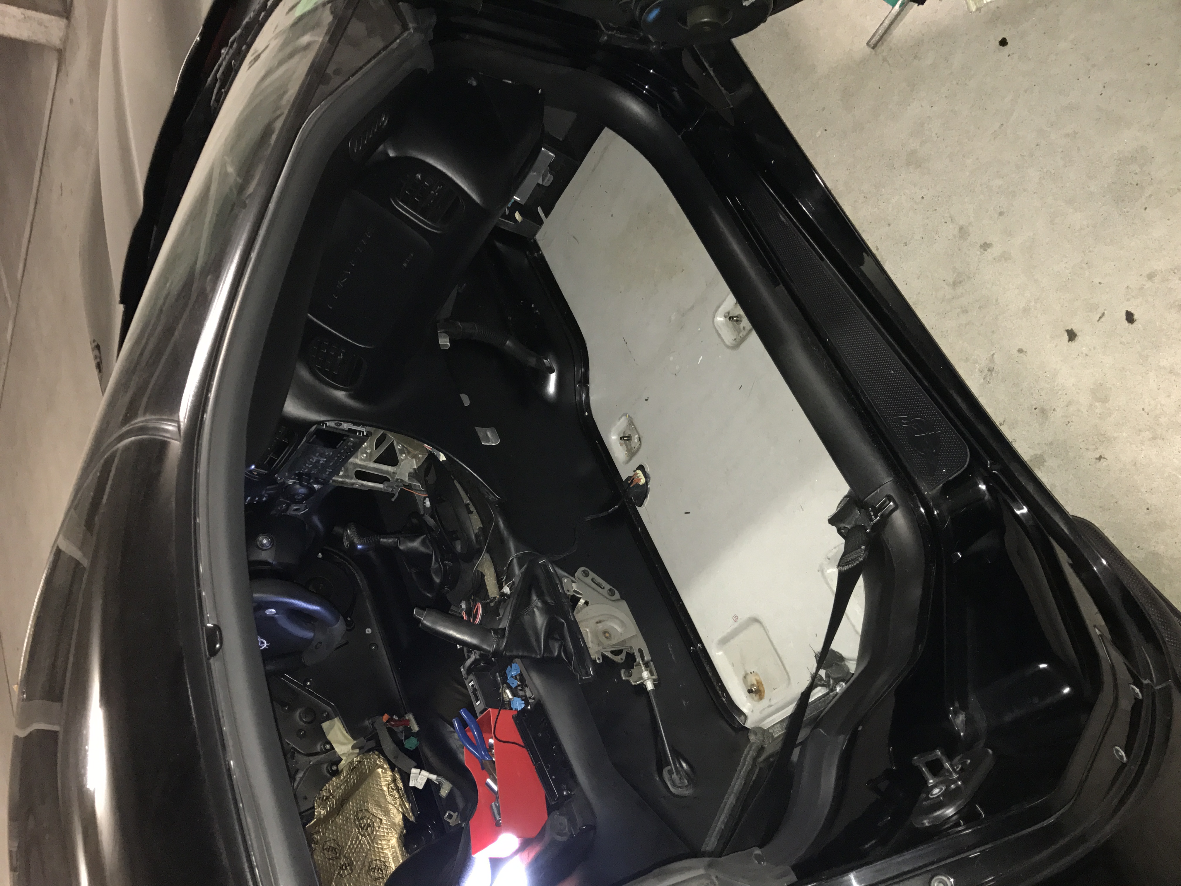 Und weiter gehts...sobald nichts mehr von de schwarzen Plaste zu sehen ist, bin ich fertig :) Die HiFi Komponenten stehen auch schon, werden wohl Focal Speaker vorne und hinten und ein Woofer von JL. In dem Zuge lass ich wohl direkt die ganzen Innenraumteile beim Sattler machen. Schwarzes Leder mit weißen Nähten.