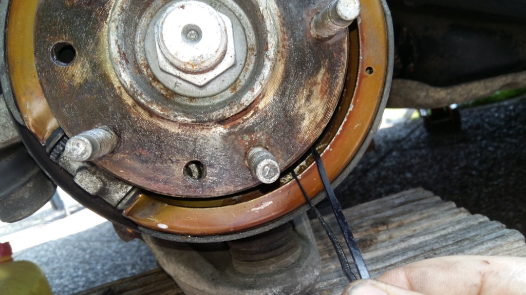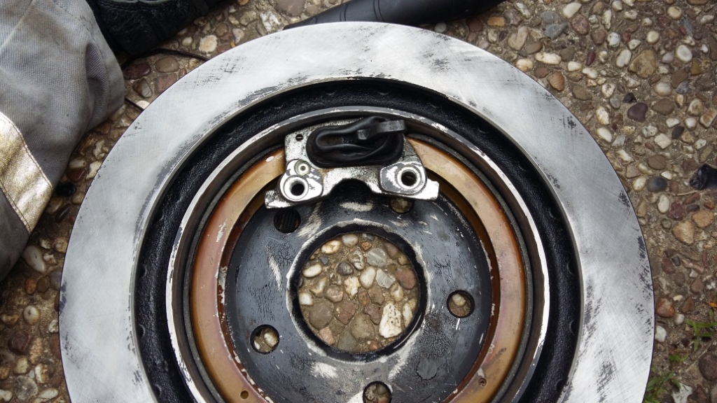 Also versuchte ich , da mann weder von hinten ( Bremsträgerplatte ) noch von vorne ( Bremsscheibe)